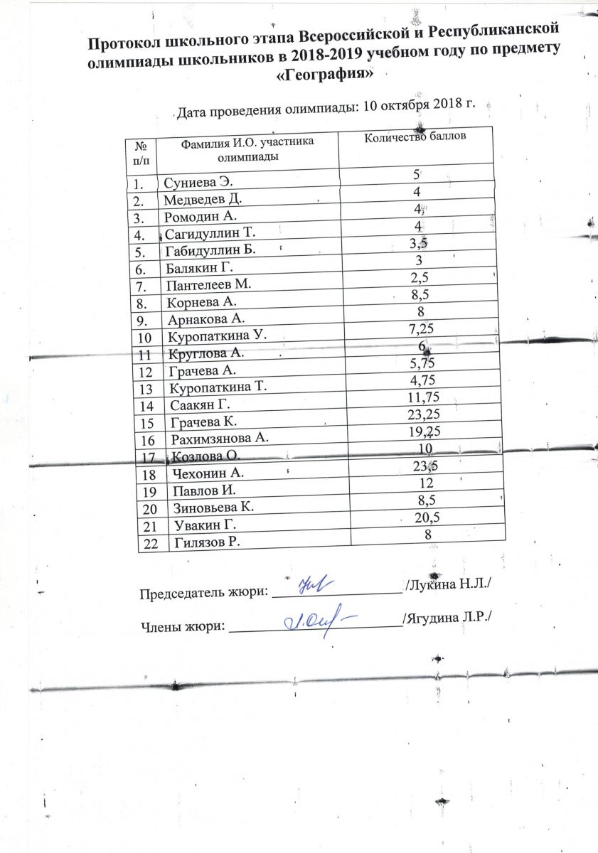 Протокол олимпиады по географии