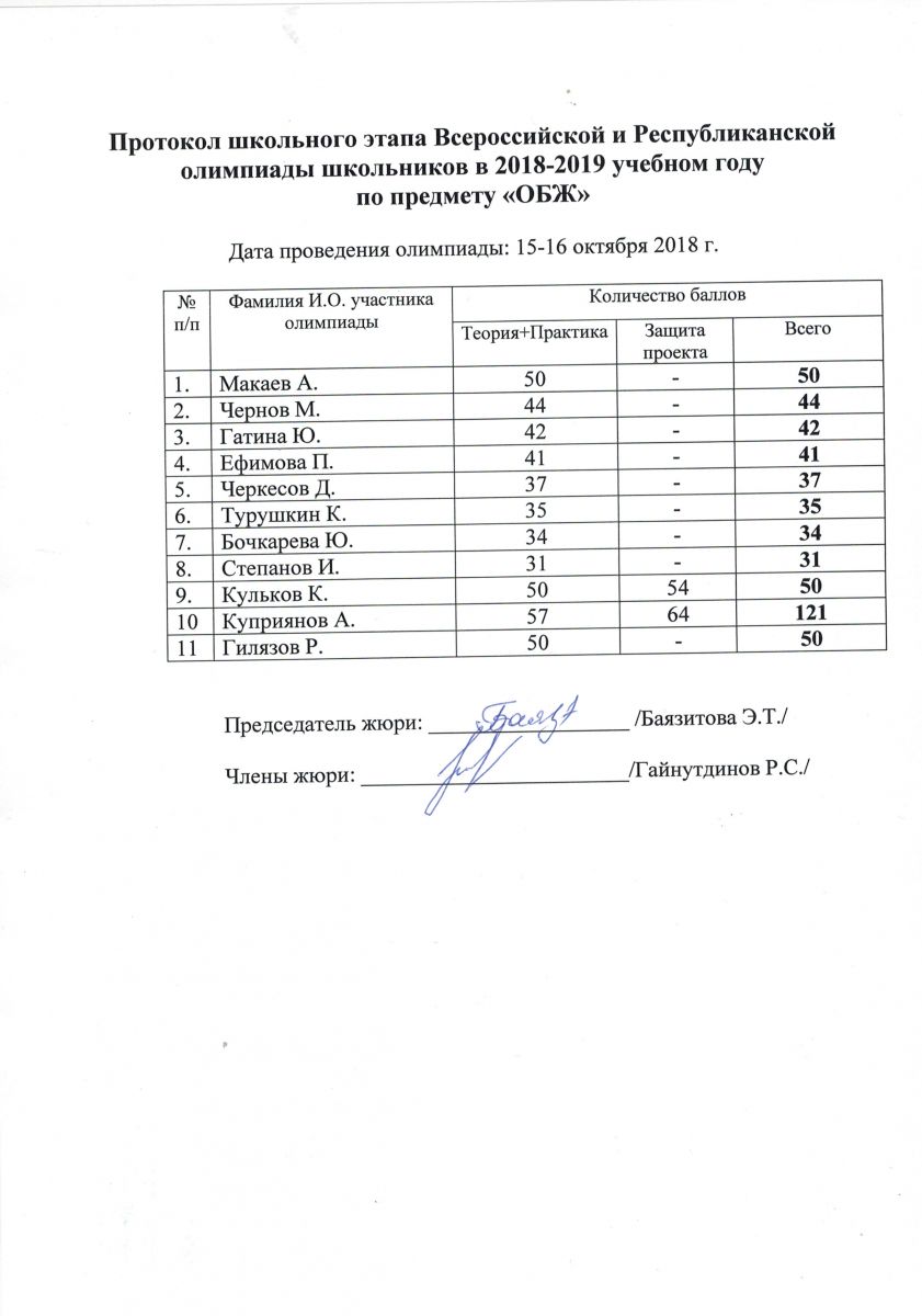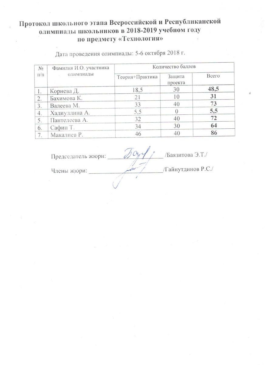 Протокол олимпиады по технологии