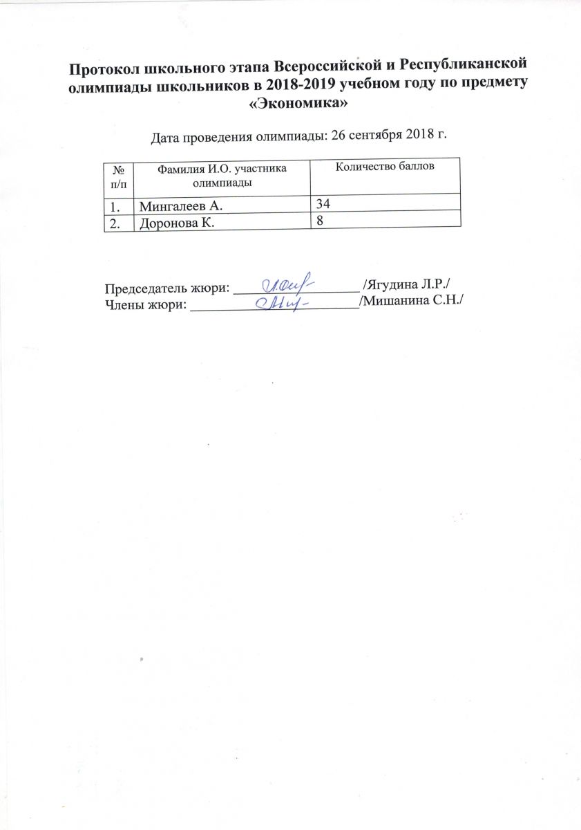 Протокол олимпиады по экономике