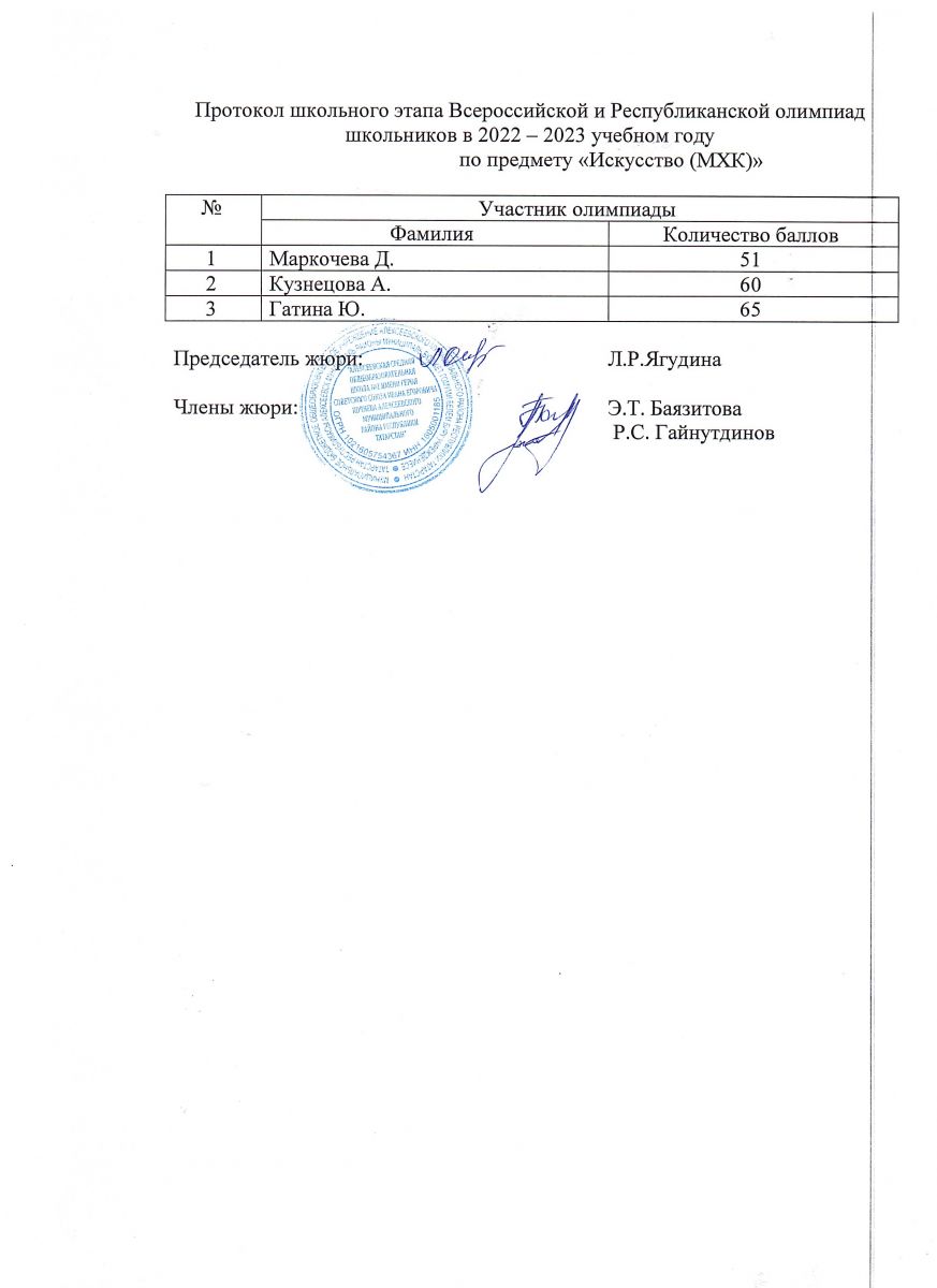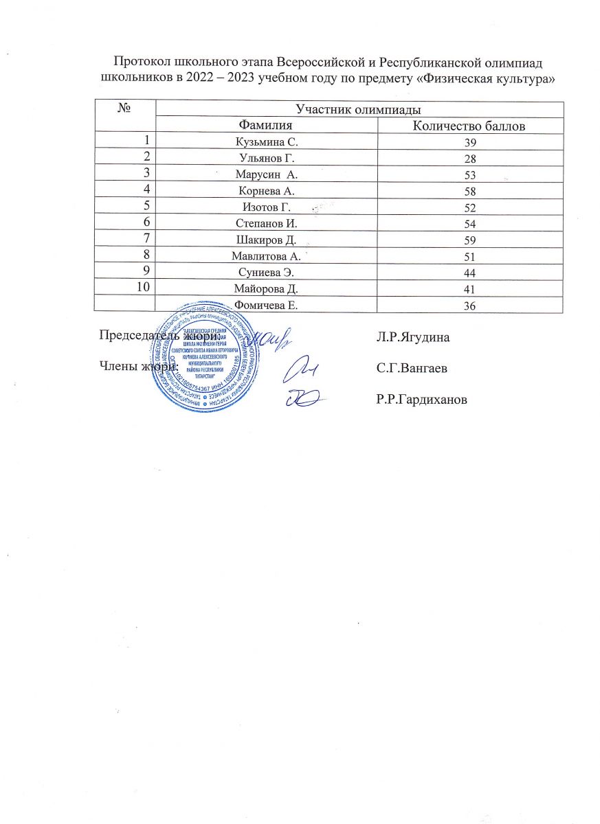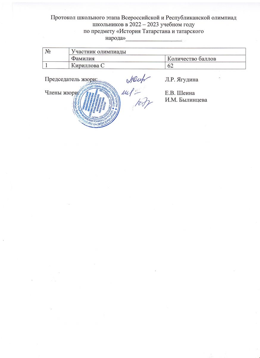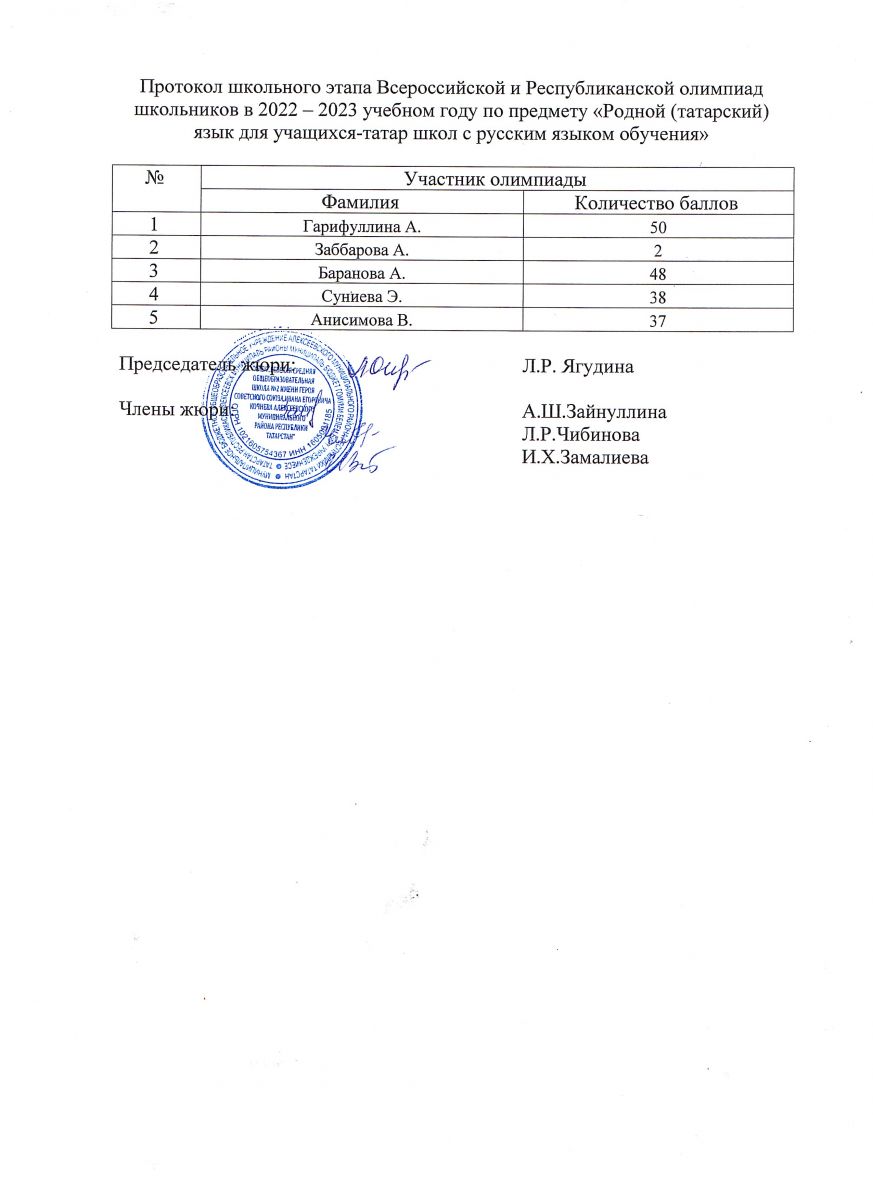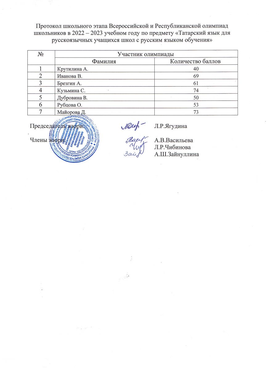 - Протокол по предмету "Татарский язык для русскоязычных учащихся школ с русским языком обучения"