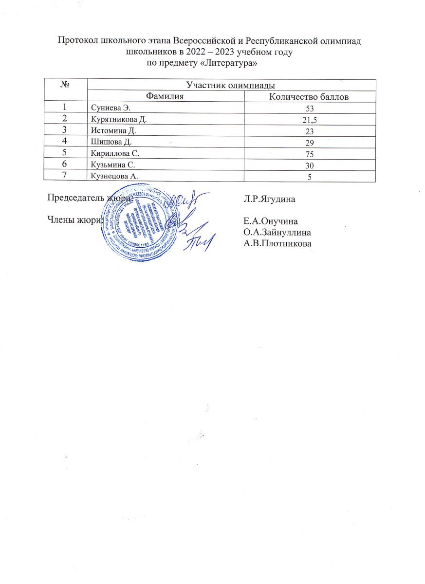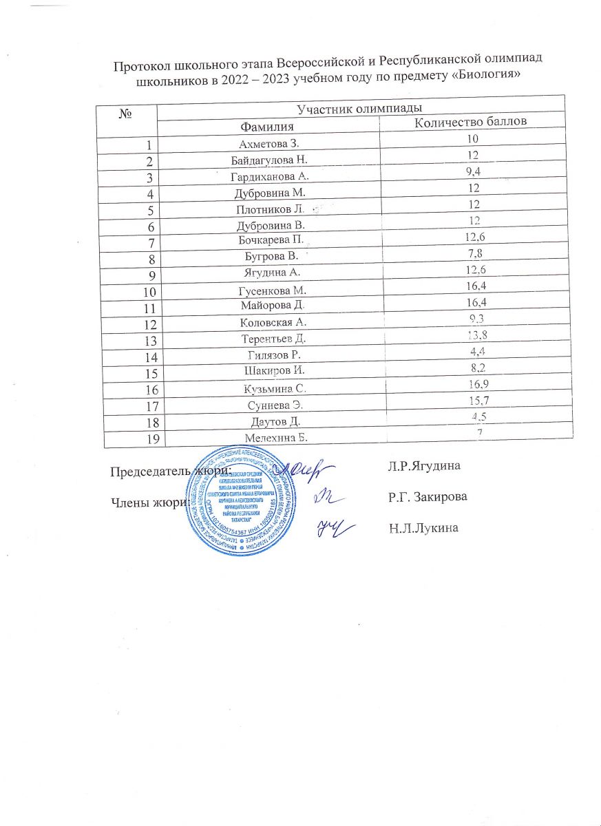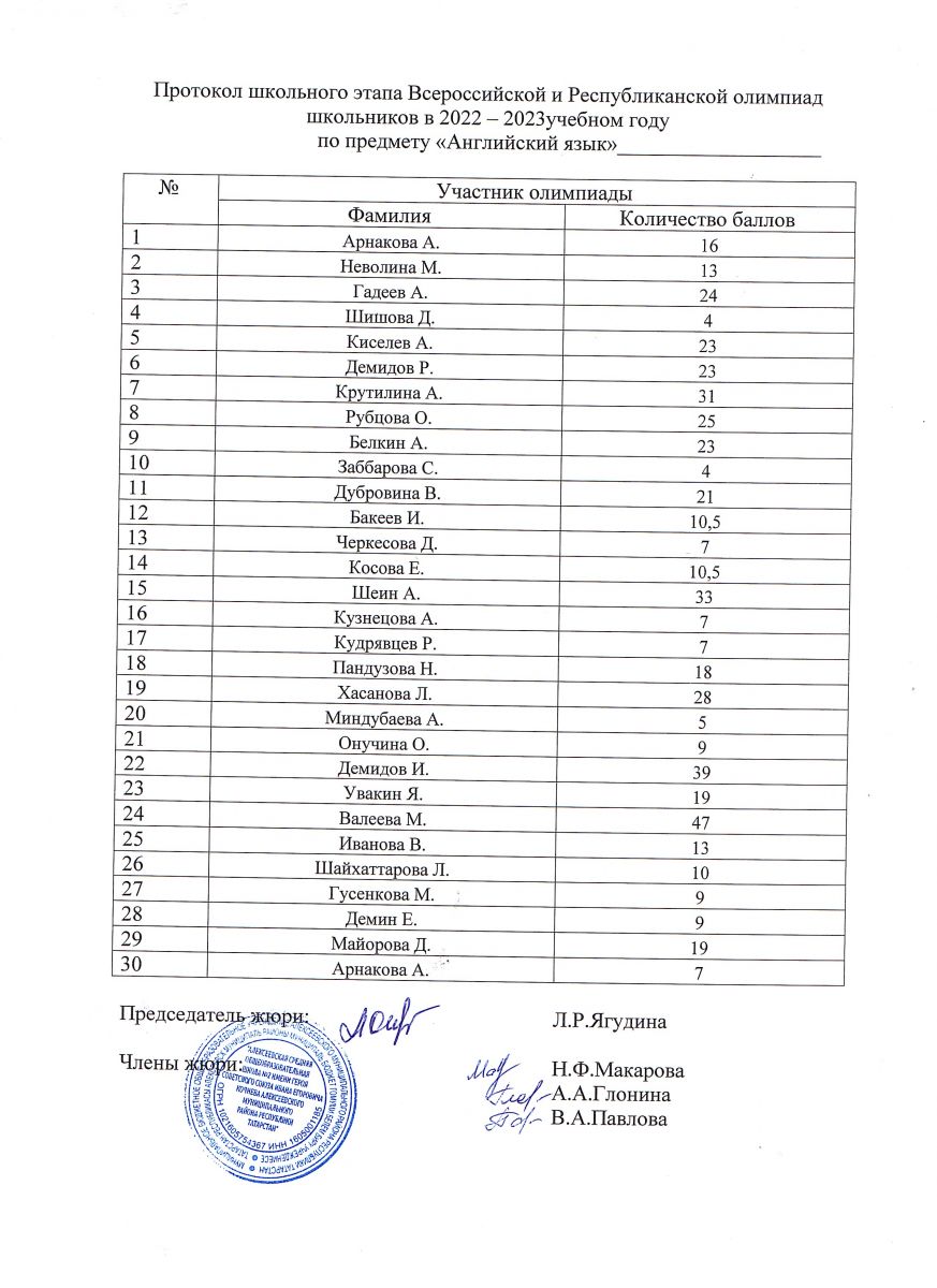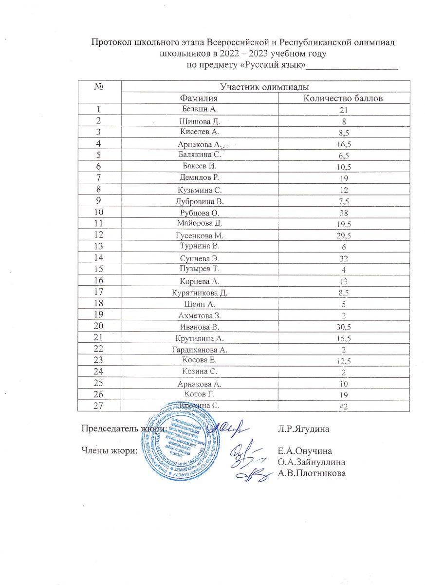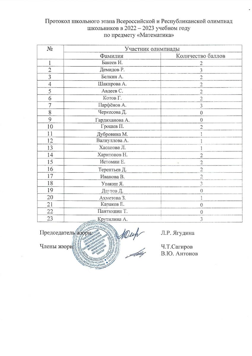 - Протокол по предмету "Татарский язык для русскоязычных учащихся школ с русским языком обучения"