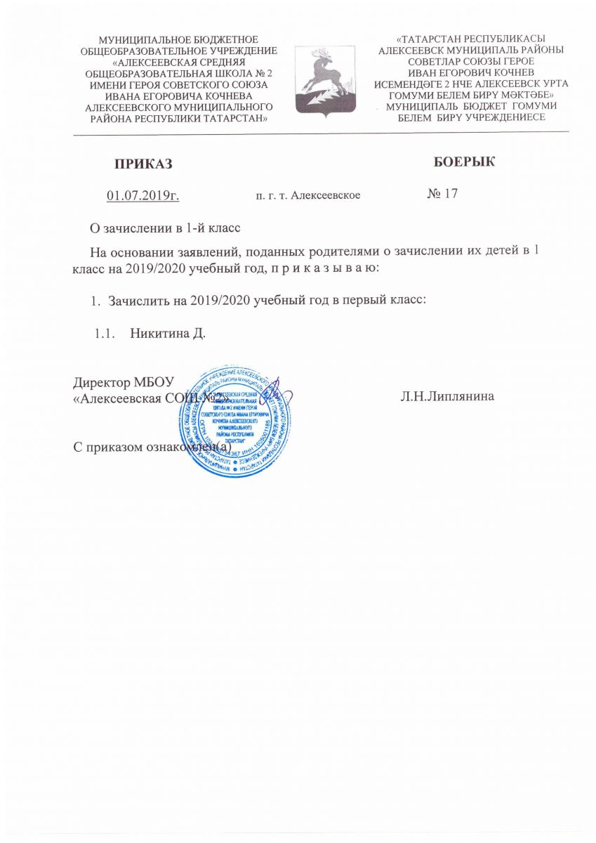 Прием в первый класс 2019-2020 учебного года\2019-2020 уку елының беренче классына кабул итү