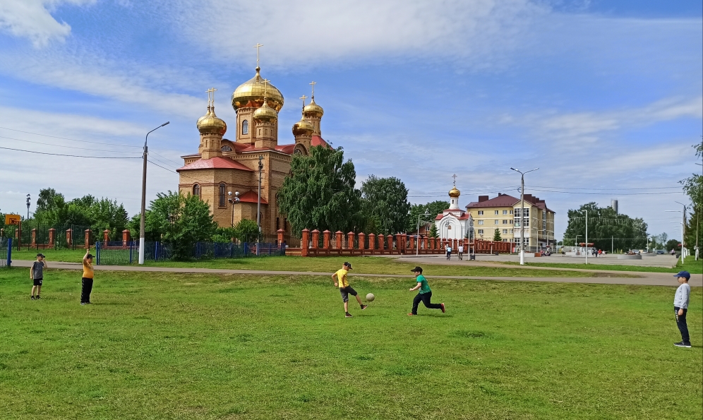 Бүген безнең отрядларда спорт көне. Зарядка, чирәмдә футбол уеннары, туп белән эстафета. Балалар баскетбол уены алымнарын өйрәнделәр. Вакытны бик яхшы үткәрдек.