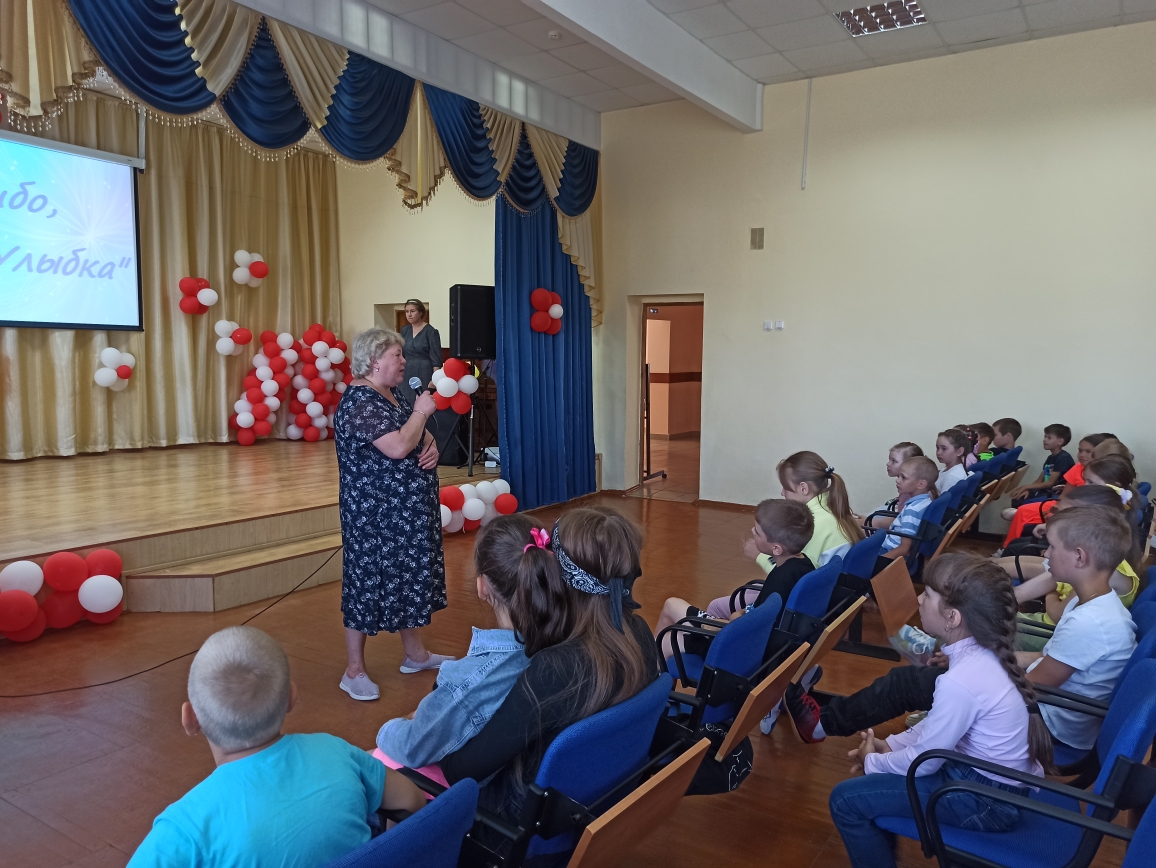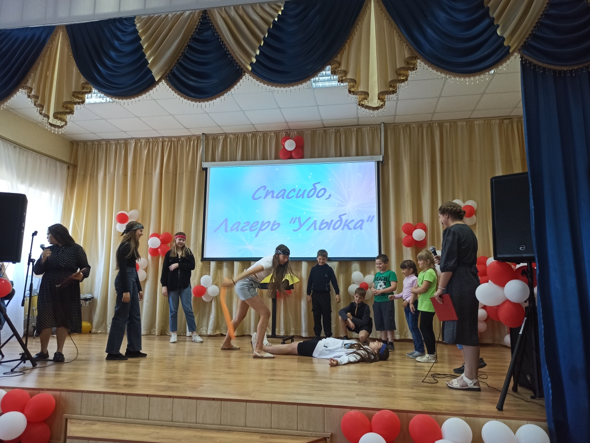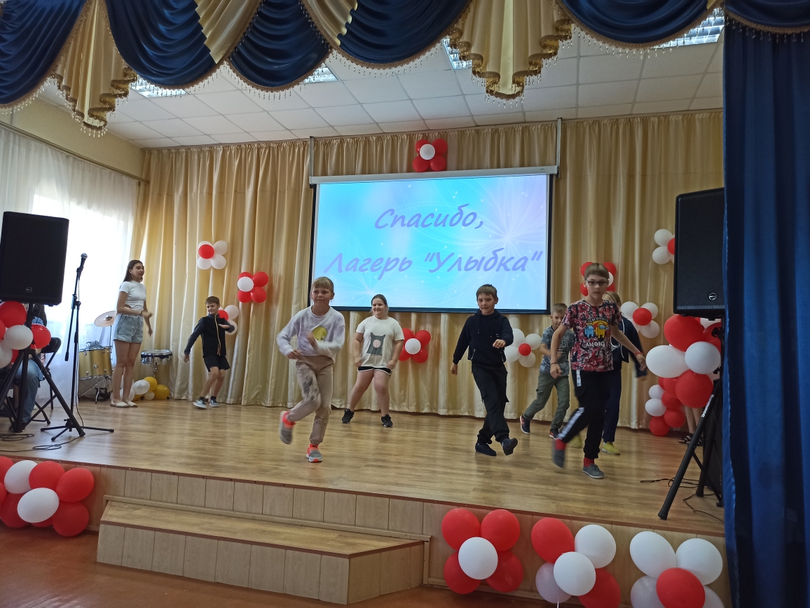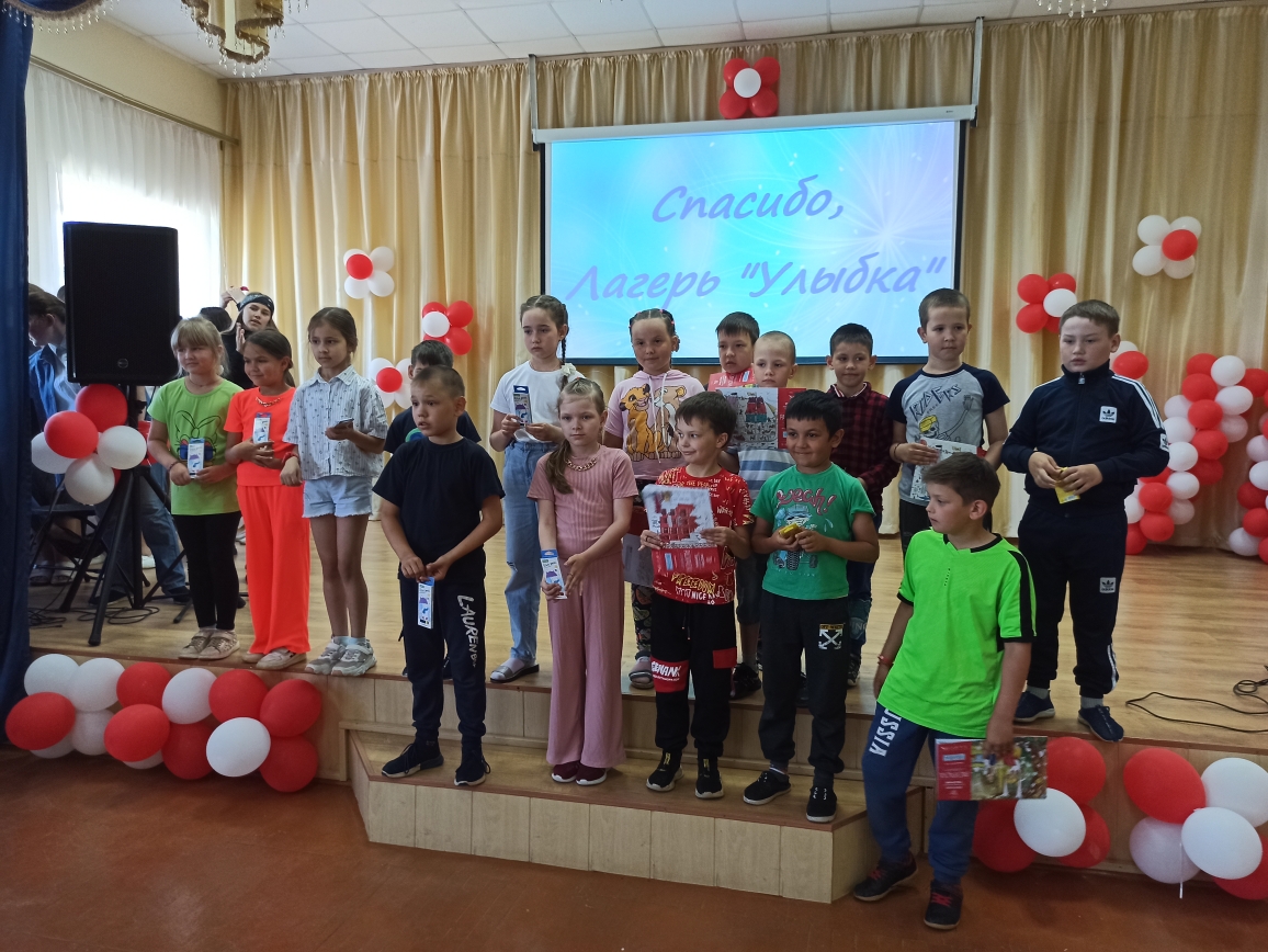 Опубликовано: 24.06.2022Сегодня для ребят был организован праздник в актовом зале. Отряды участвовали в батле между вожатыми и ребятами. Пели песни и танцевали. А ещё, говорили много добрых, хороших слов друг другу, вожатые попрощались с ребятами, т. к лагерь подходит к концу. Начальник нашего лагеря Гардиханова О. Г. тоже пожелала всем хороших каникул, снова зарядила весь лагерь улыбками и вручила каждому небольшие подарочки.