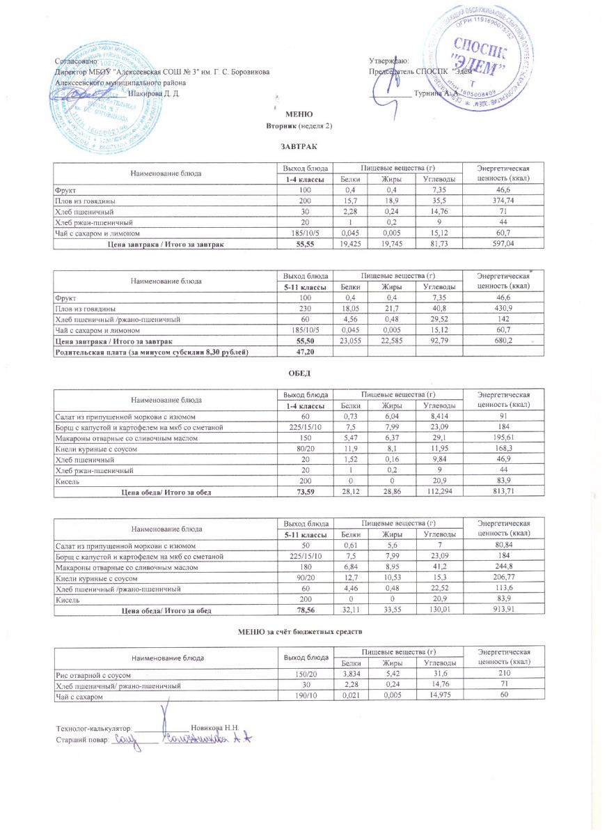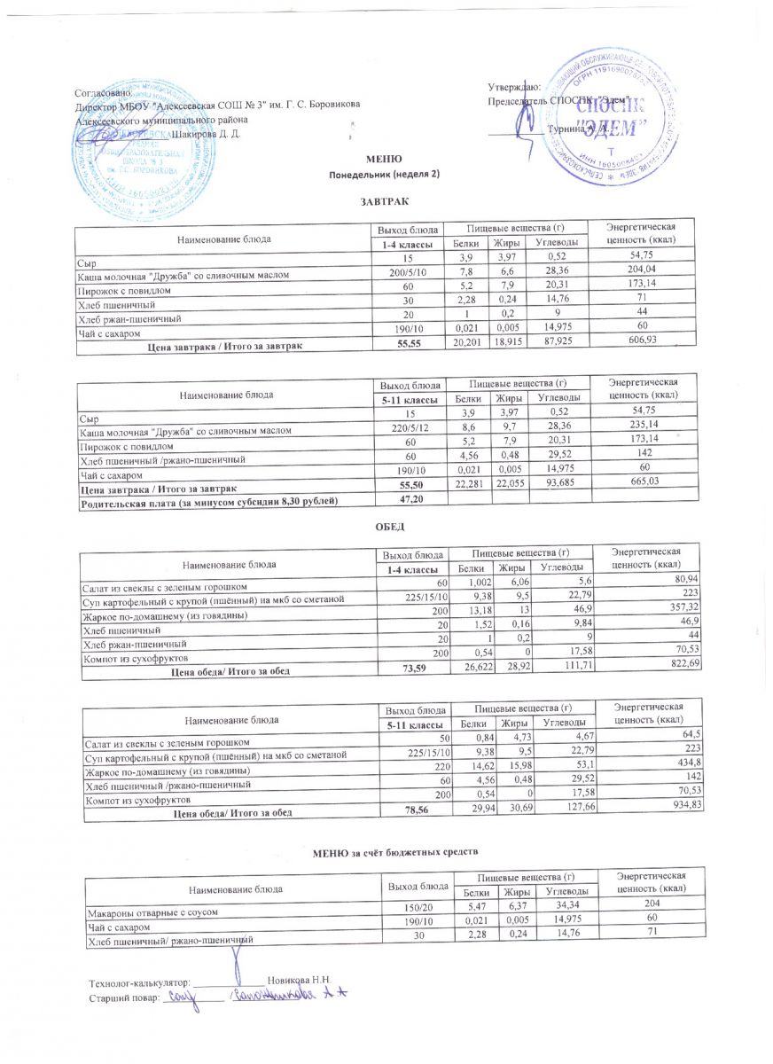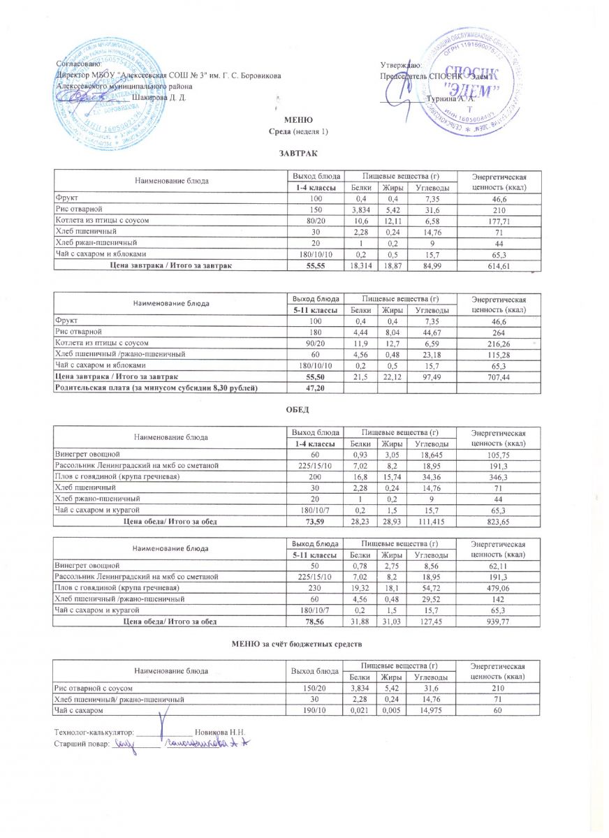Меню летний пришкольный лагерь и лагерь труда и отдыха