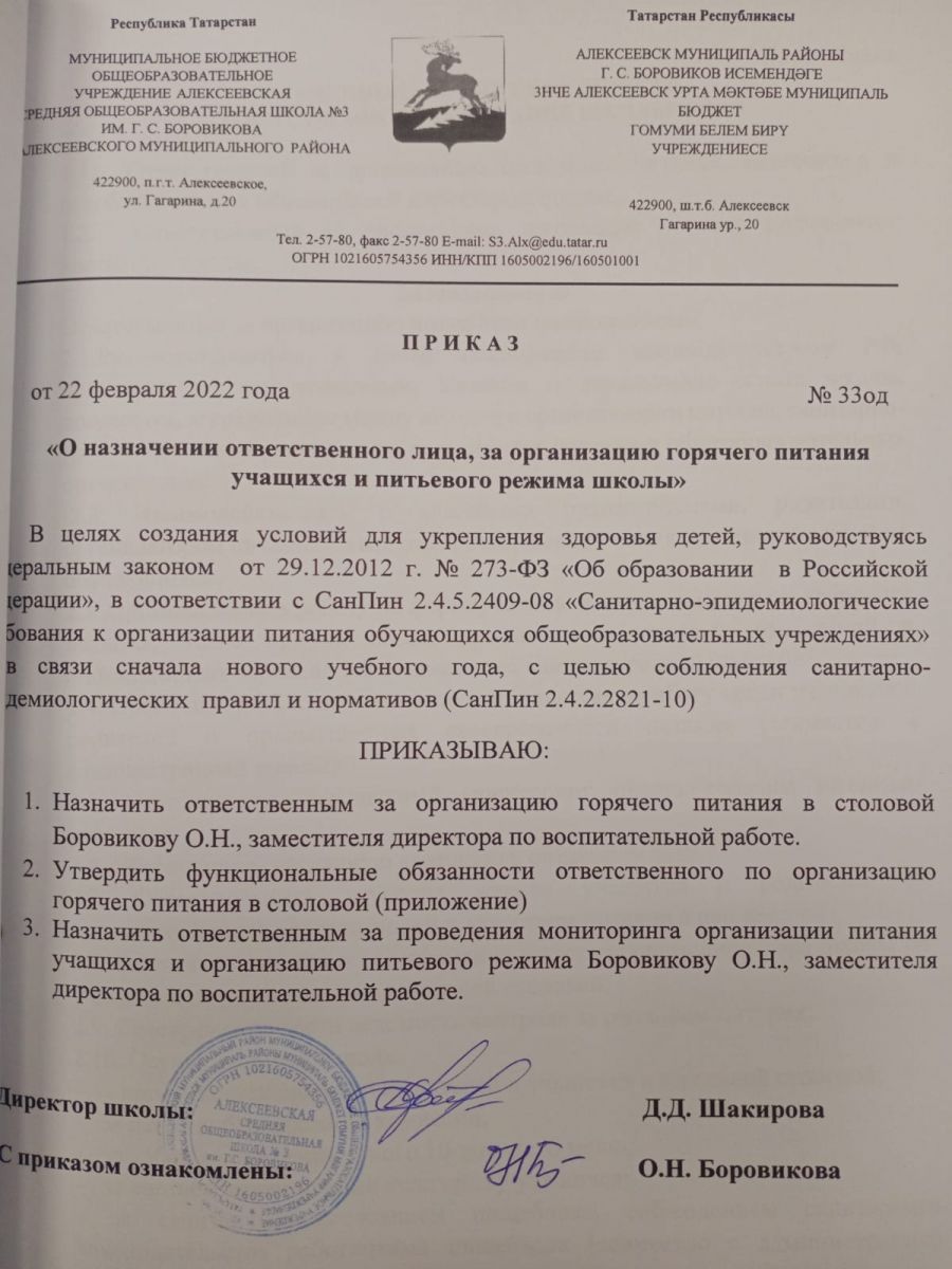 приказ о создании комиссии по контролю качества питания с участием родителей