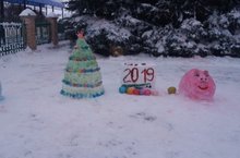 Учителя начальных классов, классные коллективы 8 а, 6, 7 б классов сделали во дворе школы снежные фигуры