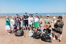 В пришкольном лагере труда и отдыха "Импульс" прошел экологический десант: ребята приняли участие в акции "Чистый берег", играли в водный волейбол. -