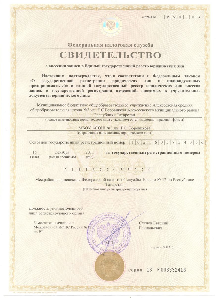 Муниципальное бюджетное общеобразовательное учреждение Алексеевская средняя общеобразовательная школа №3 им. Г.С. Боровикова Алексеевского муниципального района Республики Татарстан/Татарстан Республикасы Алексеевск муниципаль районы Г.С.Боровиков исемендәге 3нче Алексеевск урта гомуми белем бирү мәктәбе муниципаль бюджет гомуми белем бирү учреждениесе