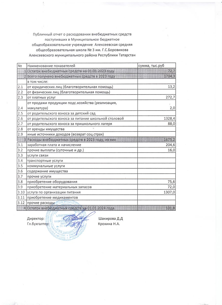 Публичный отчет расходования внебюджетных средств поступивших МБОУ АСОШ №3 им.Г.С.Боровикова