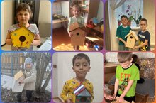 1 апреля отмечается Международный день птиц. Каждый год пернатые приносят нам на крыльях весну. День птиц - это время прилета пернатых с зимовок. Родители и ребята подготовительной группы тоже решили поддержать традицию встречи пернатых друзей и своими руками смастерили скворечники./1 апрельдә - Халыкара кошлар көне билгеләп үтелә. Мәктәпкә әзерлек төркеме балалары әти - әниләре ярдәмендә, үз куллары белән сыерчык оялары ясадылар.