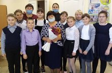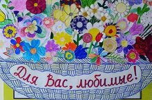 Ещё один сюрприз ожидал учителей на втором этаже школы. Ребята удивили своих педагогов целой корзиной разнообразных цветов. За несколько дней до праздника каждый ученик нарисовал свой любимый цветок. Далее они были вырезаны и помещены в одну большую композицию, которая нашла почетное место в рекреации школы.