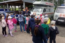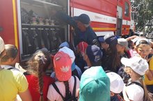 В пожарной части ребятам провели экскурсию по территории, показали караульные помещения, дежурно-диспетчерскую службу, помещение для отдыха. Дети с большим интересом слушали огнеборцев и задавали много вопросов. Пожарные показали ребятам предметы боевой одежды, пожарно-спасательное оборудование. Даже девчонкам было интересно примерить боевую одежду. Ребятам рассказали об имеющихся в распоряжении пожарной части служебных машинах, что с ними связано, как они работают и чем оборудованы.