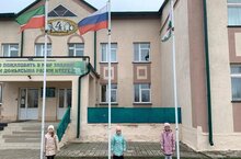 Началась новая учебная неделя и по традиции учащиеся подняли государственные флаги./Яңа уку атнасы башланды һәм традиция буенча укучылар дәүләт флагларын күтәрделәр.