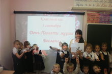 Третье сентября в России стало Днем солидарности в борьбе с терроризмом после трагических событий в североосетинском городе Беслан. Сегодня во всех классах прошли классные часы, посвященные 10летней годовщине трагедии в Беслане. Были подготовлены презентации, организованны беседы.Ребята почтили память погибших минутой молчания.