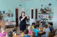 В ясельной груупе воспитатель Ахметзянова Р.Х. провела открытое занятие с использованием интеграции на тему "В гостях у солнышка", где педагогам были предоставлены чтение русских потешек, пение песни "Солнышко лучистое", беседы с детьми о весне, и была проведена подвижная игра "Солнышко и дождик". В результате которого дети получили сладкие призы, а педагоги пополнили опыт своей работы.