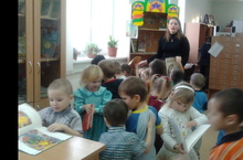 Первое посещение школьной библиотеки с средней группой 30.01.2013