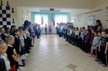 22 февраля в рамках месячника гражданско-патриотического воспитания в нашей школе прошёл ежегодный конкурс - смотр строя и песни, а также небольшой концерт для пап и дедушек. Каждый класс постарался показать самые положительные качества - ответственность, умение работать в команде и маршировать в ногу. Каждый горел желанием выглядеть бравым солдатом и победить. Обучающиеся 1 класса и воспитанники детского сада показали своё мастерство вне конкурса, так как приняли участие впервые./22 февральдә безнең мәктәптә гражданлык-патриотик тәрбия айлыгы кысаларында ел саен үткәрелә торган строй һәм җыр смотр - конкурсы, шулай ук әтиләр һәм бабайлар өчен концерт узды. Һәр сыйныф җаваплылыкны, командада эшли белү кебек уңай сыйфатларны гына күрсәтергә тырышты. Барысы да кыю солдат булып күренергә тырышты һәм җиңү теләге белән янды. 1нче сыйныф укучылары һәм балалар бакчасында тәрбияләнүчеләр үзләренең осталыкларын конкурстан тыш күрсәттеләр.