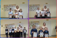 На линейке поздравляли учащихся которые стали победителями в школьных творческих конкурсах./Линейкада мәктәпнең иҗади конкурсларында катнашучы укучыларны котладылар. 28.02.2023