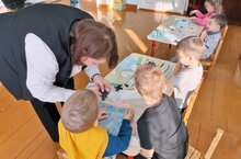 20 февраля в старшей группе сотрудники Центральной библиотеки Алексеевского муниципального района Скворцова А.А. и Куликова Э.М. провели мастер-класс по изготовлению поделки «Вертолетик» из бумаги. В ходе мероприятия с ребятами была проведена беседа об истории дня Защитника Отчества и о его значении. С большим увлечением ребята создавали подарок своим папам и проявили живой интерес к технологии создания своих творческих работ./20 февральдә өлкән төркемдә Алексеевск муниципаль районы үзәк китапханәсе хезмәткәрләре Скворцова А. А. һәм Куликова Э. М. кәгазьдән «Вертолетик» ясау буенча мастер-класс үткәрделәр. Чара барышында Ватанны саклаучылар көне тарихы һәм аның әһәмияте турында әңгәмә узды һәм балалар әтиләренә бүләк ясадылар.