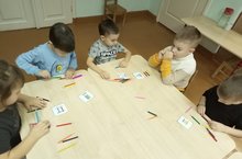 Цветными карандашами можно создавать красивые рисунки. Ребята старшей группы поиграли в игру "Весёлый карандаш", а также сделали массаж кисти рук./Төсле карандашлар белән матур рәсемнәр ясау гына түгел, ә күңелле уеннар да уйнарга мөмкин, шулай ук куллар өчен массаж да ясарга була.
