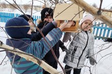 Дети подготовительной группы создали на участке «Птичью столовую» для зимующих птиц./Мәктапкә әзерлек төркеме балалары бездә кышлаучы кошлар өчен «Кошлар ашханәсе» ясадылар.