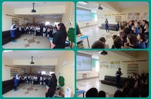 Нашу школу посетили начальник Читопольского отделения ГБУ "Безопасность дорожного движения " Сидрова Светлана Рамазановна и Председатель родительского комитета Алексеевского муниципального района Кислова Светлана Александровна. Они провели мероприятия по профилактики безопасности движения. Дети с удовольствием отвечали на вопросы и за правильные ответы получали подарки./Безнең мәктәптә "Юл хәрәкәте иминлеге" ГБУ Читополь бүлеге начальнигы Сидрова Светлана Рамазановна һәм Алексеевск муниципаль районының ата-аналар комитеты рәисе Кислова Светлана Александровна булды. Алар хәрәкәт куркынычсызлыгын профилактикалау чараларын үткәрделәр. Балалар сорауларга бик теләп җавап бирделәр һәм дөрес җаваплар өчен бүләкләр алдылар.