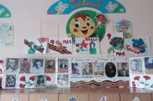 В старшей группе юные патриоты Отчизны почтили память своих дедов и прадедов ,создали стенд боевой славы с фотографиями героев своей семьи выставку рисунков на День Победы./Өлкән төркемдә Ватаныбызның яшь патриотлары үзләренең бабаларын искә алдылар, үз гаиләләре геройларының фотосурәтләре белән хәрби дан стенды һәм Җиңү көненә рәсемнәр күргәзмәсе оештырдылар.
