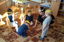 Дети превратились в цыплят и получили от игры положительные эмоции ./