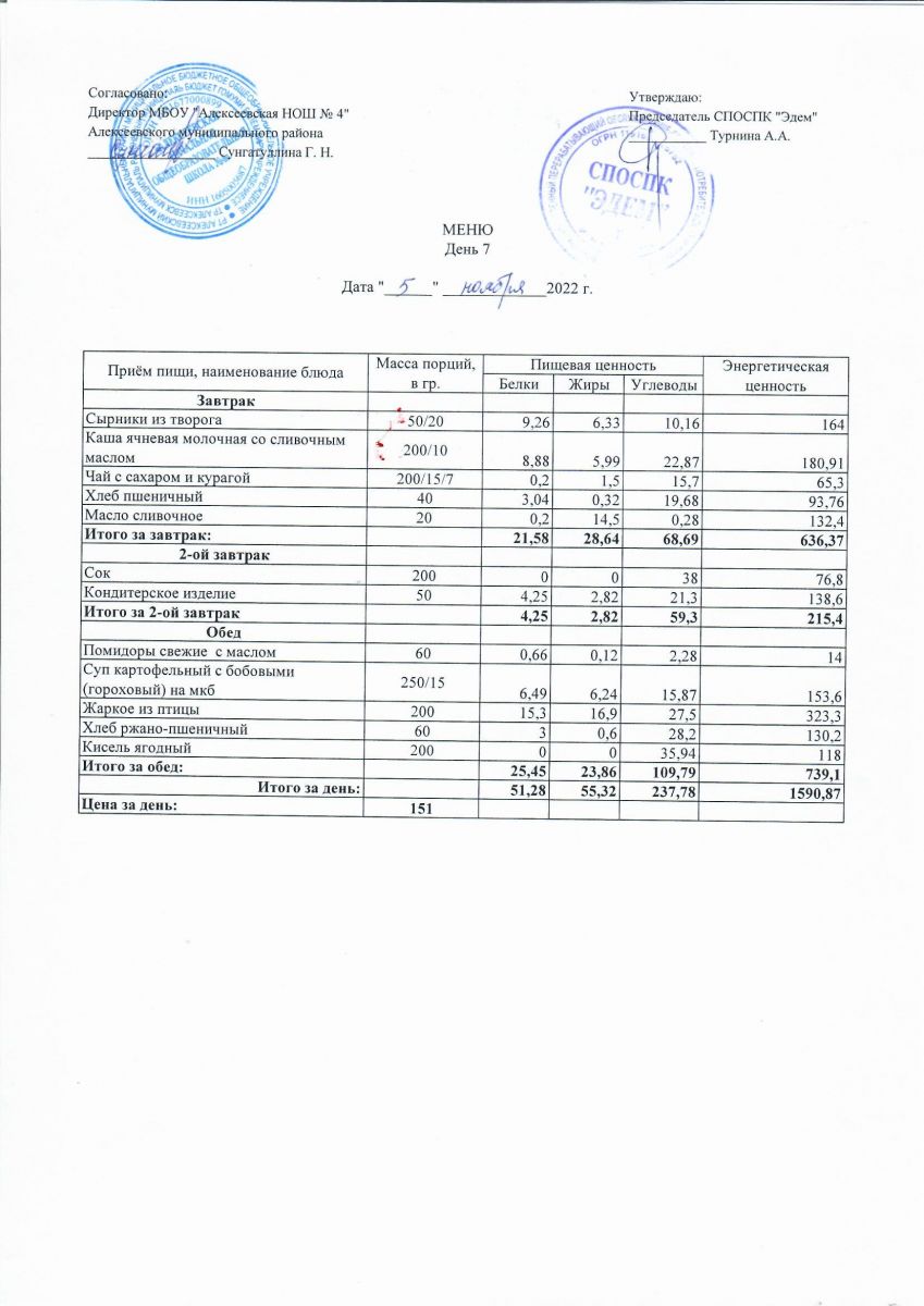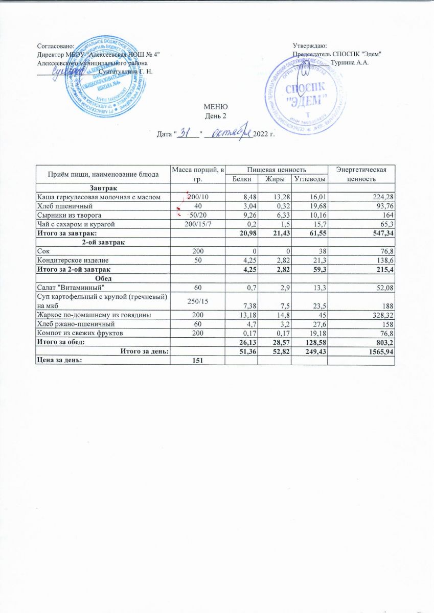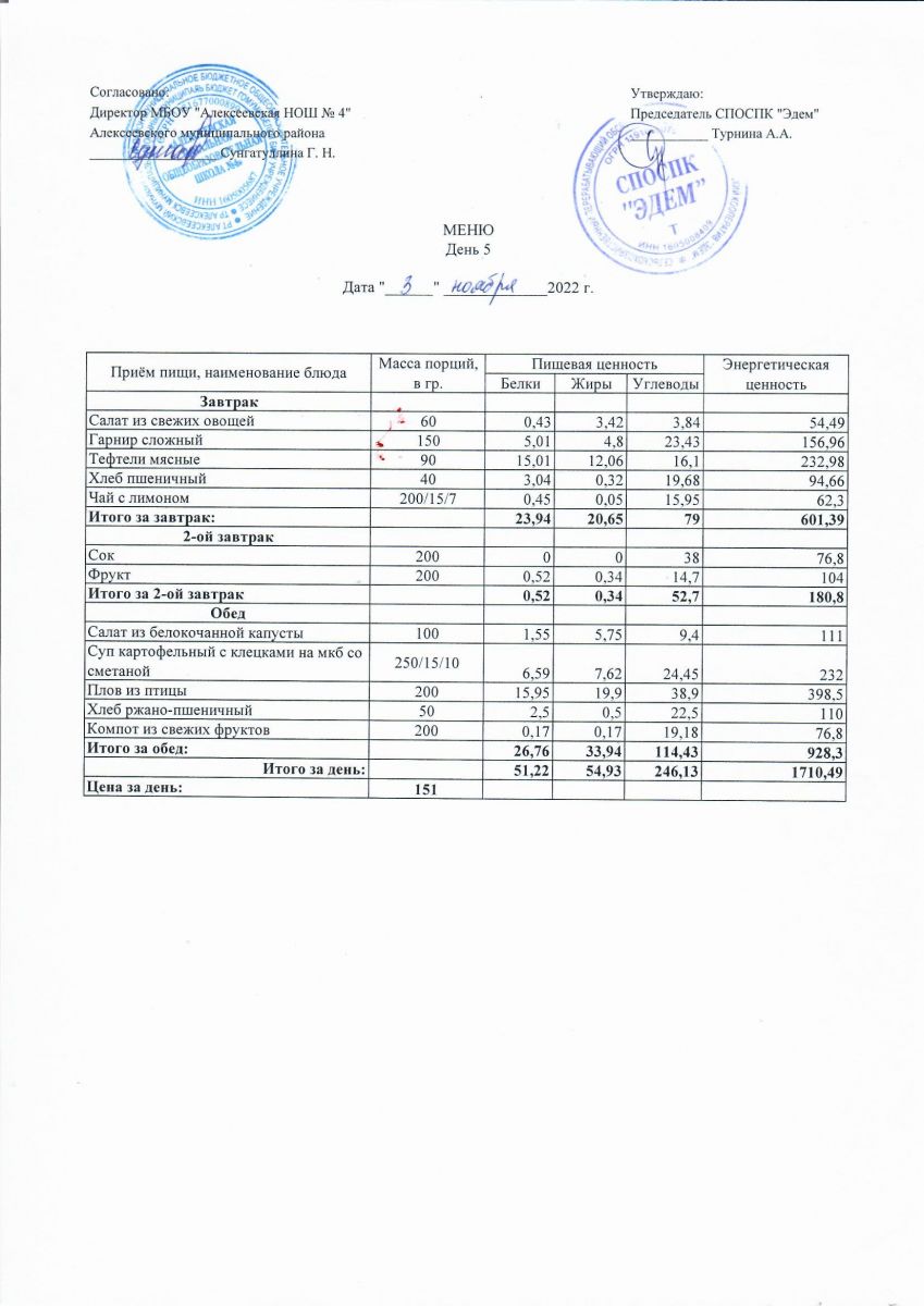 Меню осеннего пришкольного лагеря на 29.10.22, 31.10.22, 1.11.22., 2.11.22, 3.11.22, 4.11.22, 5.11.22