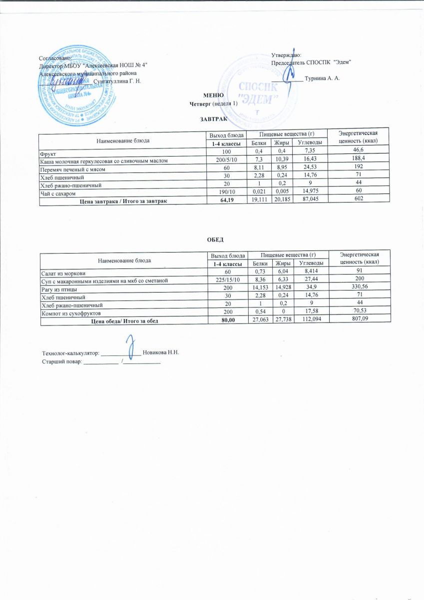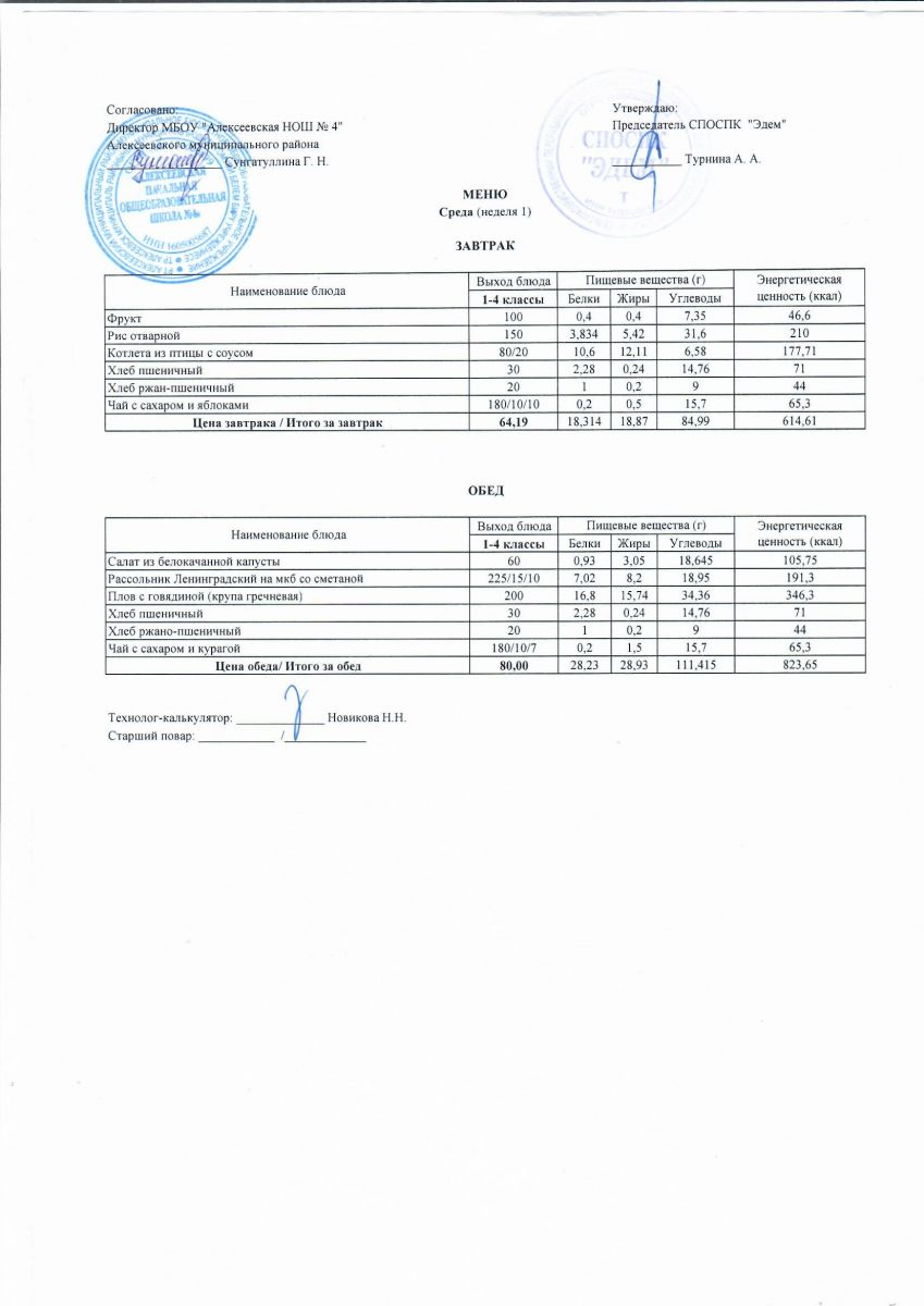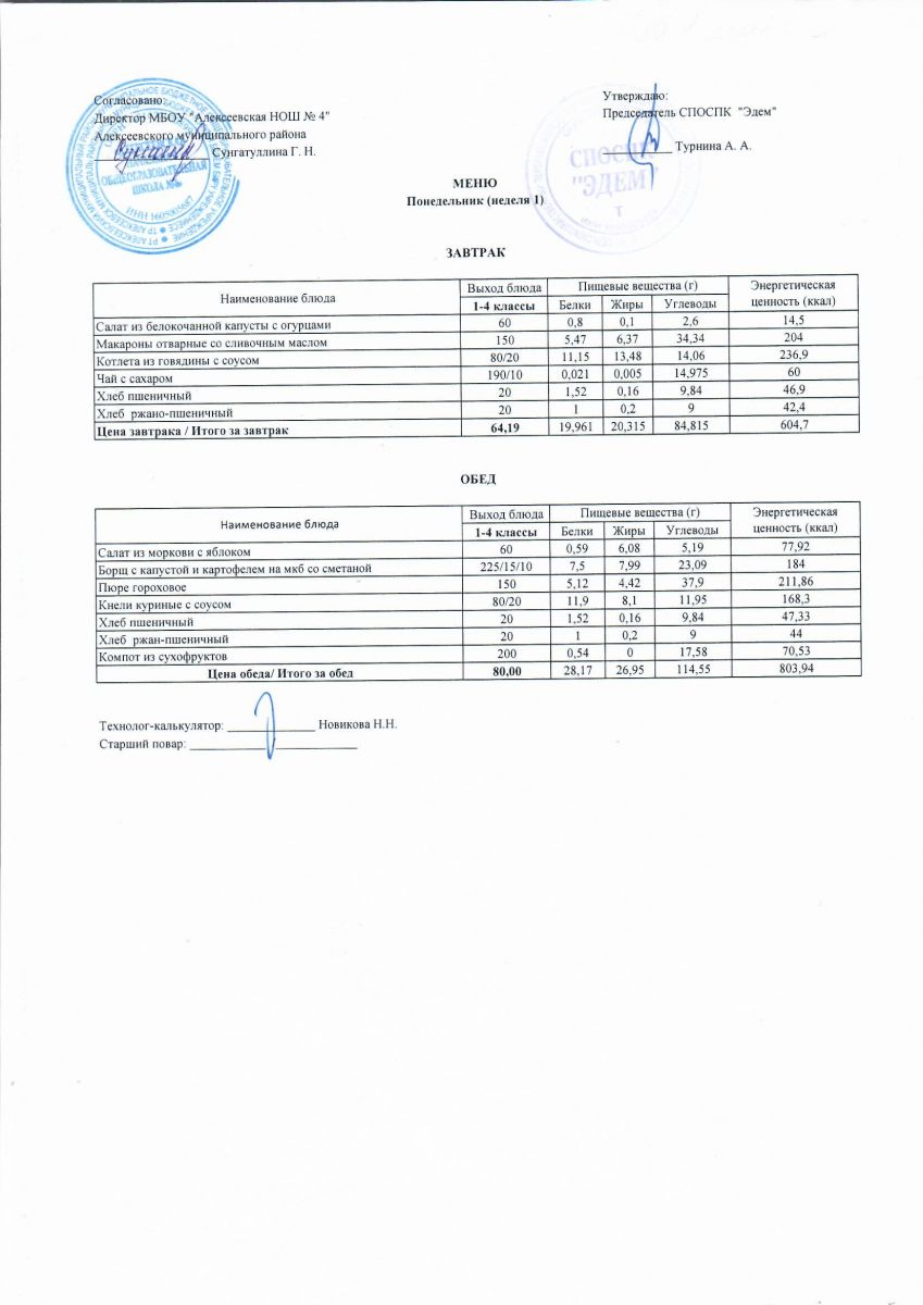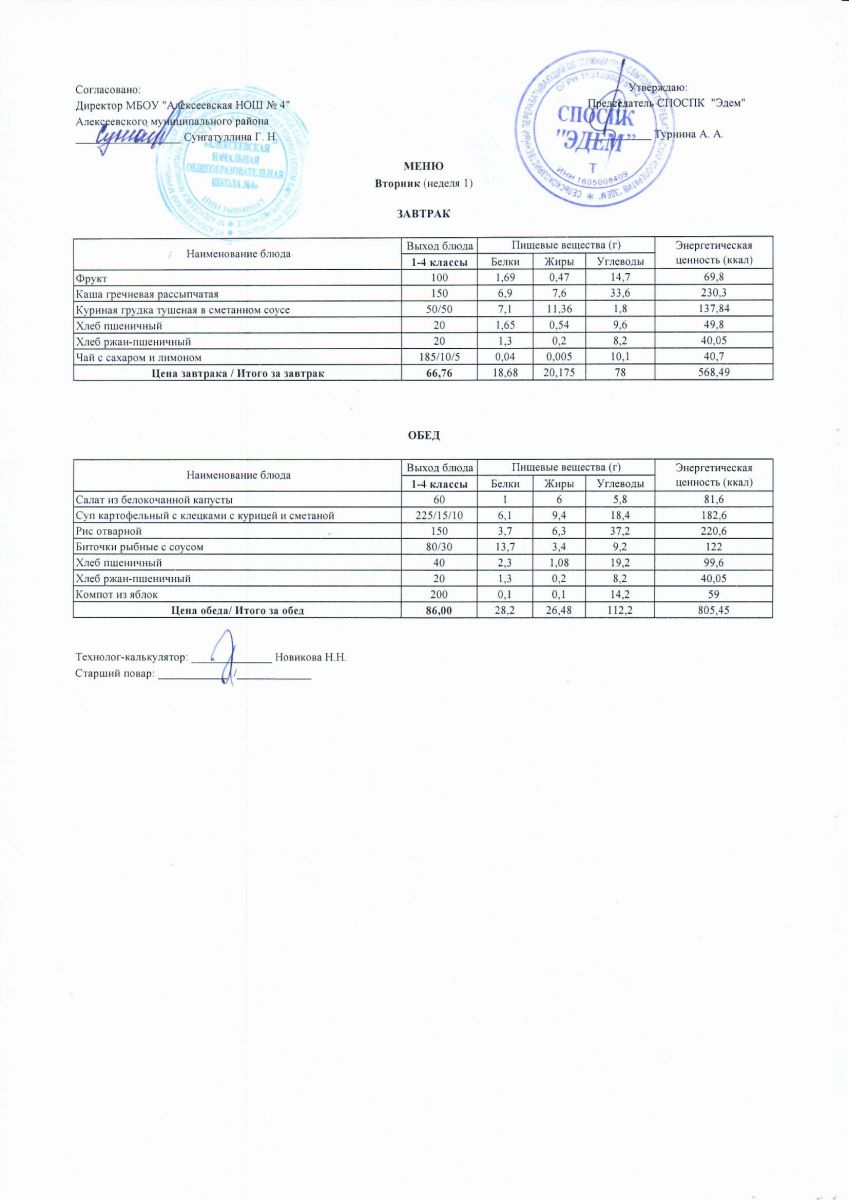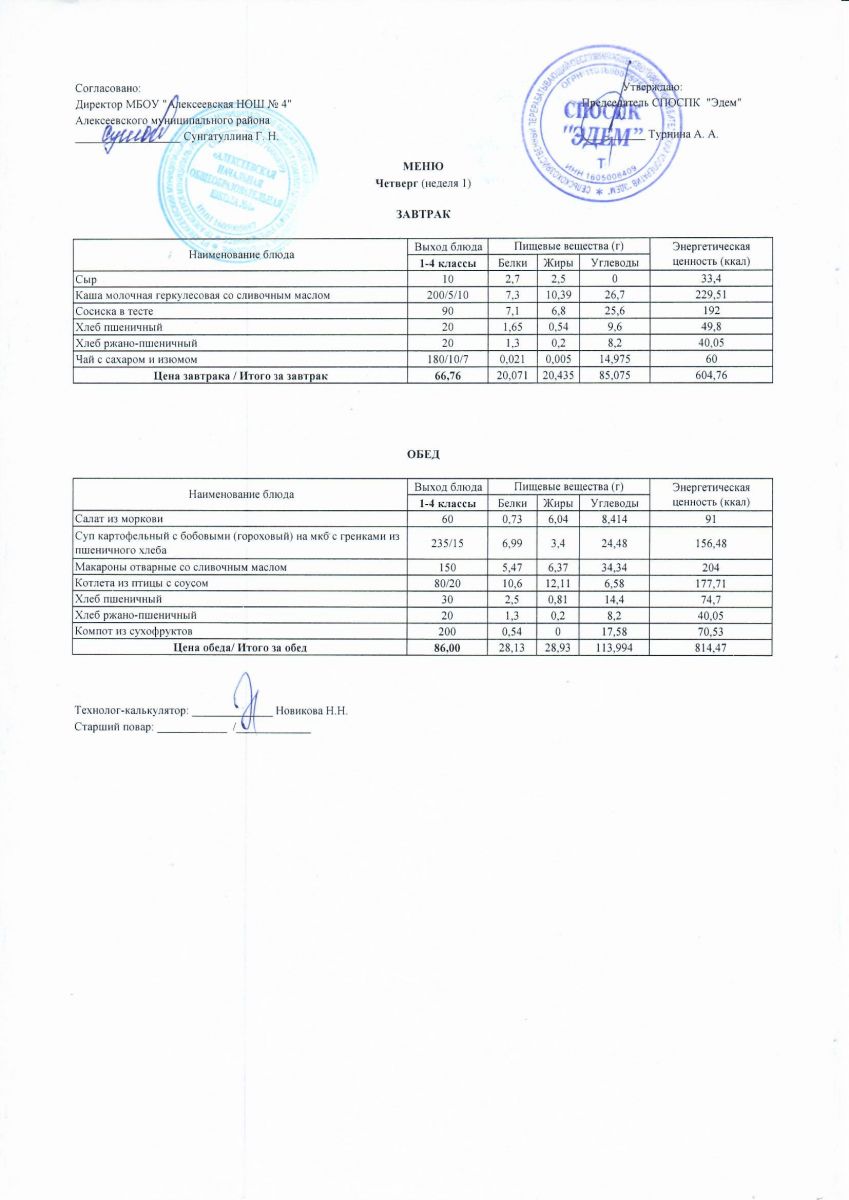 Меню для обучающихся 1-4 классов с 01.03.2024г