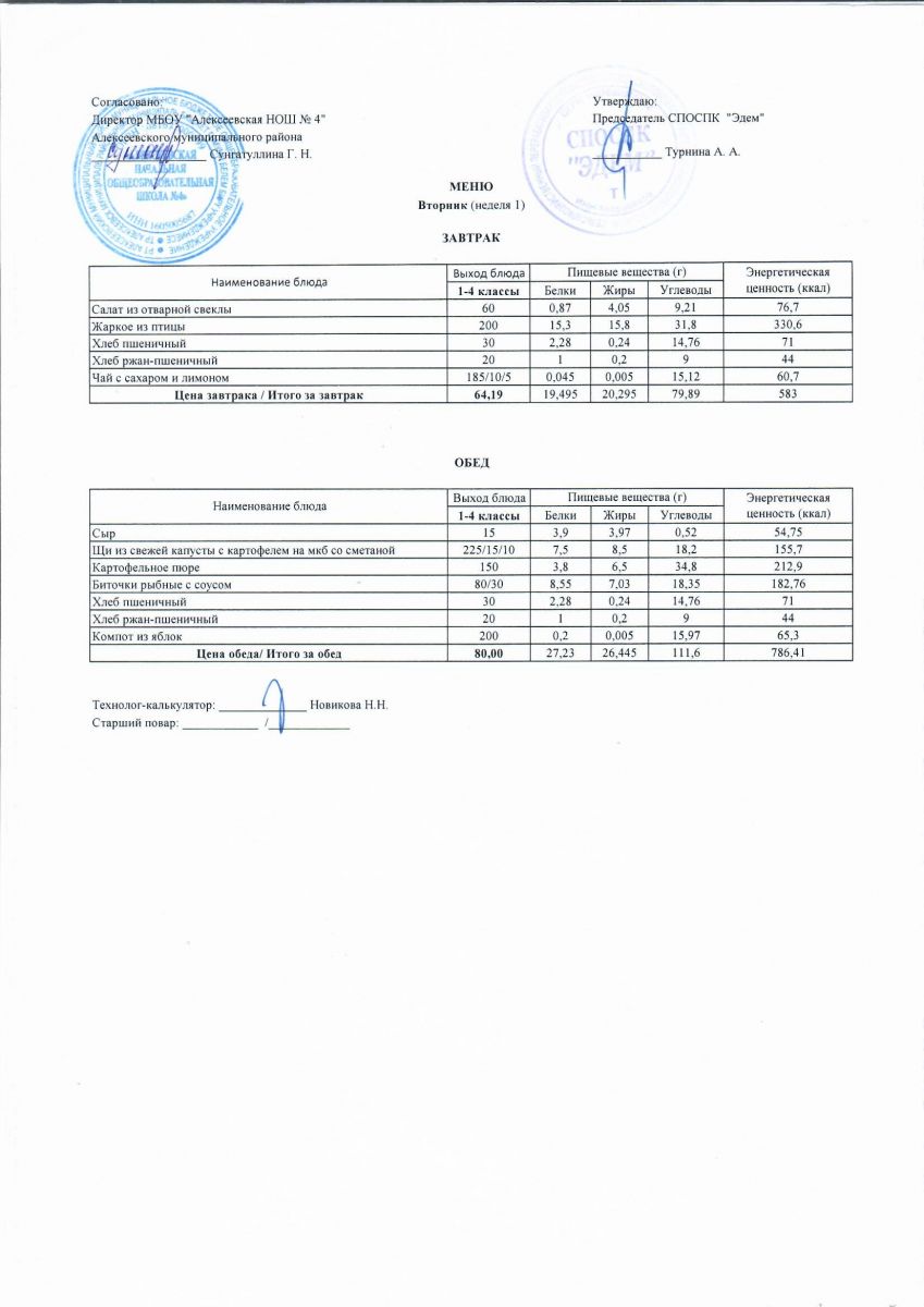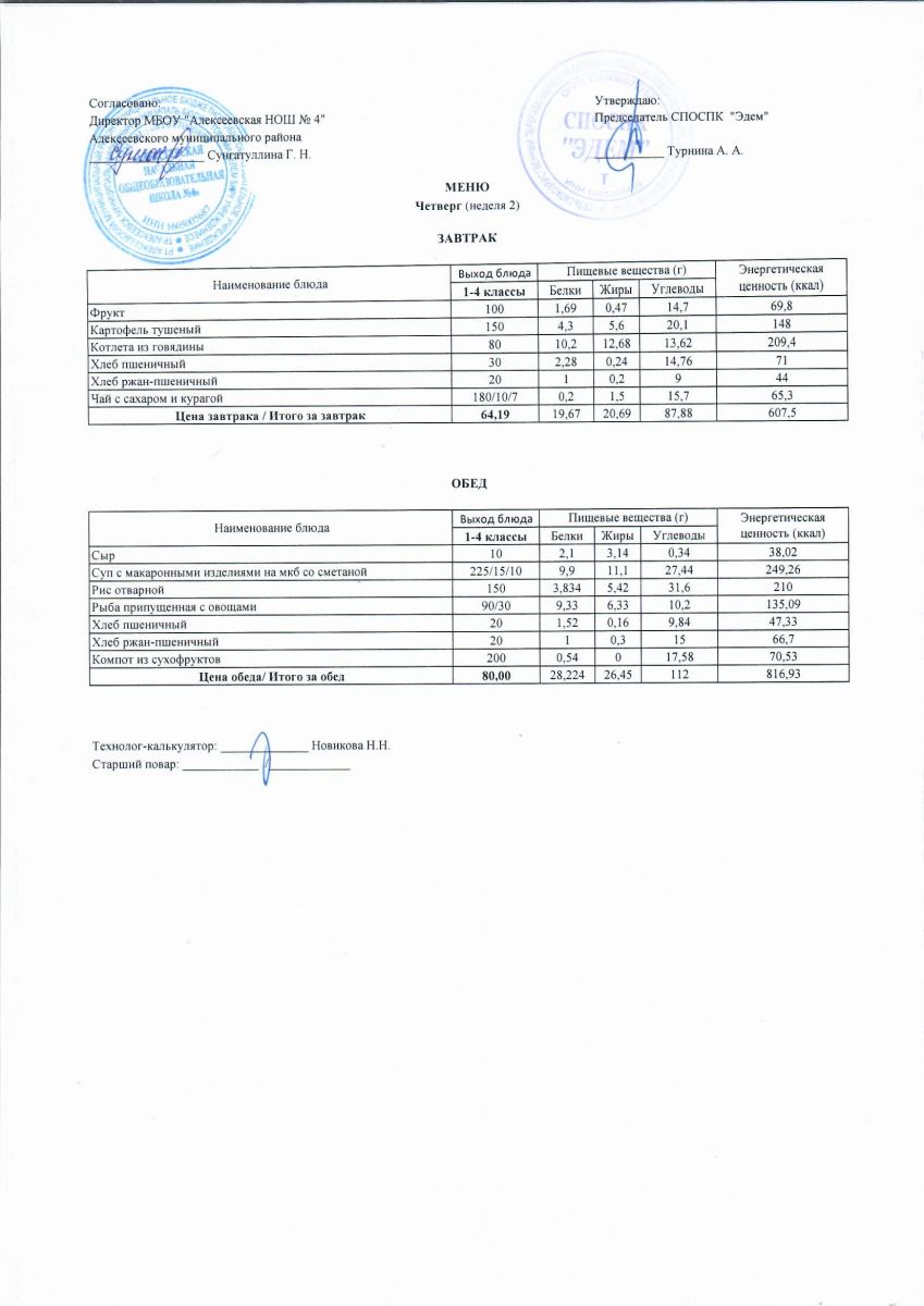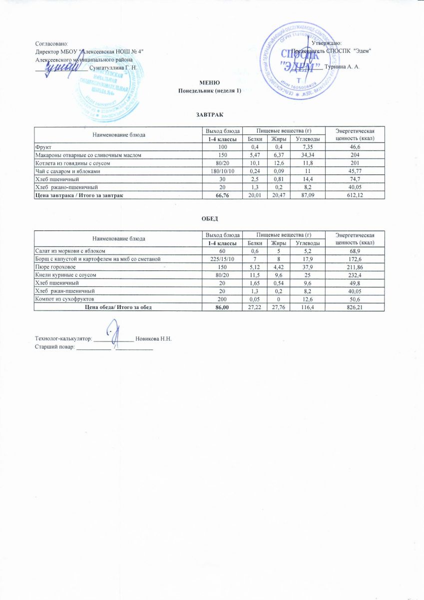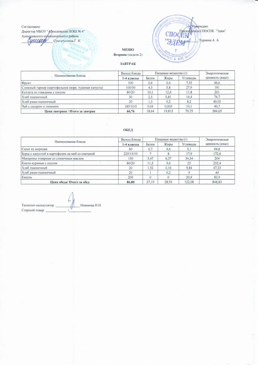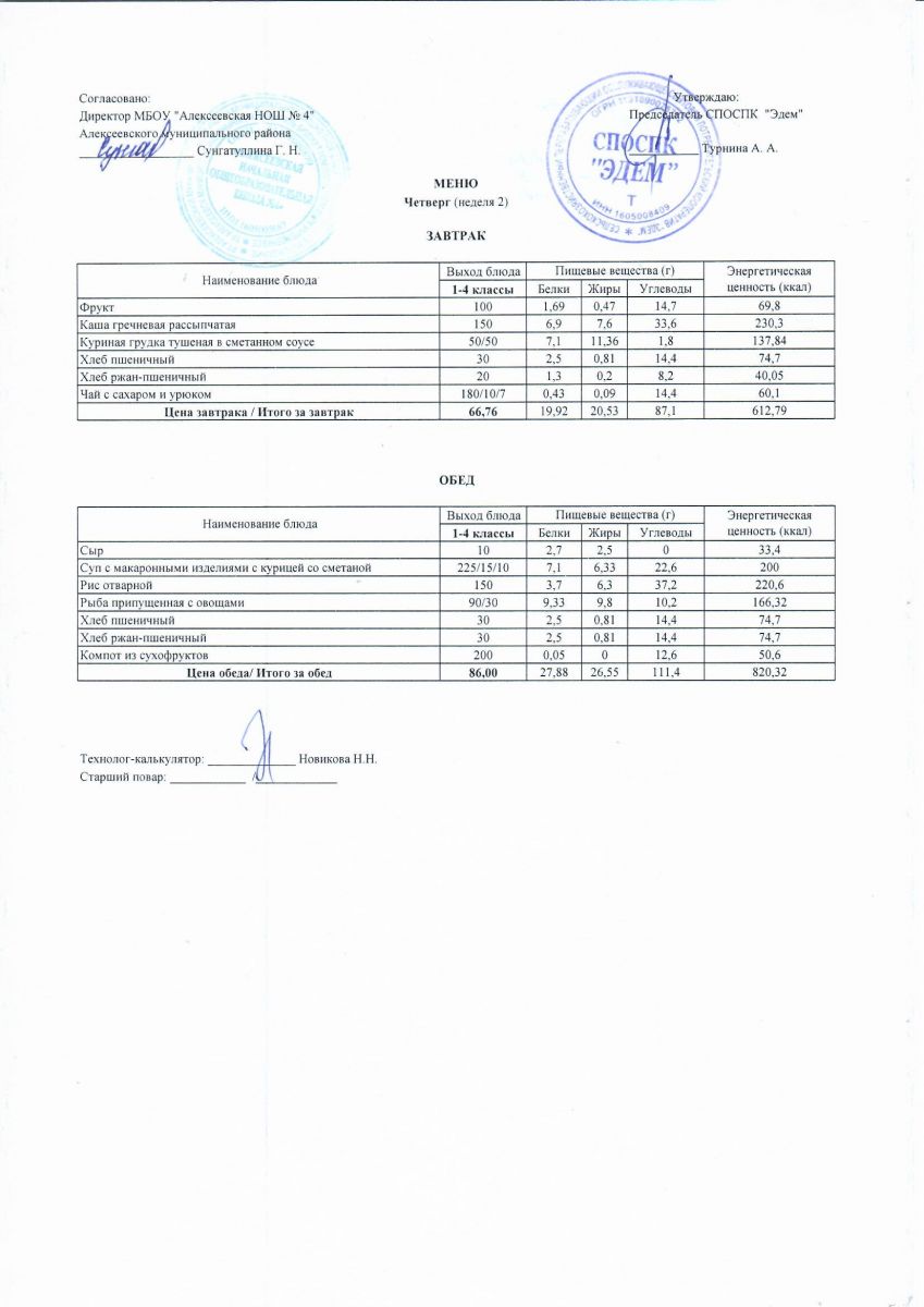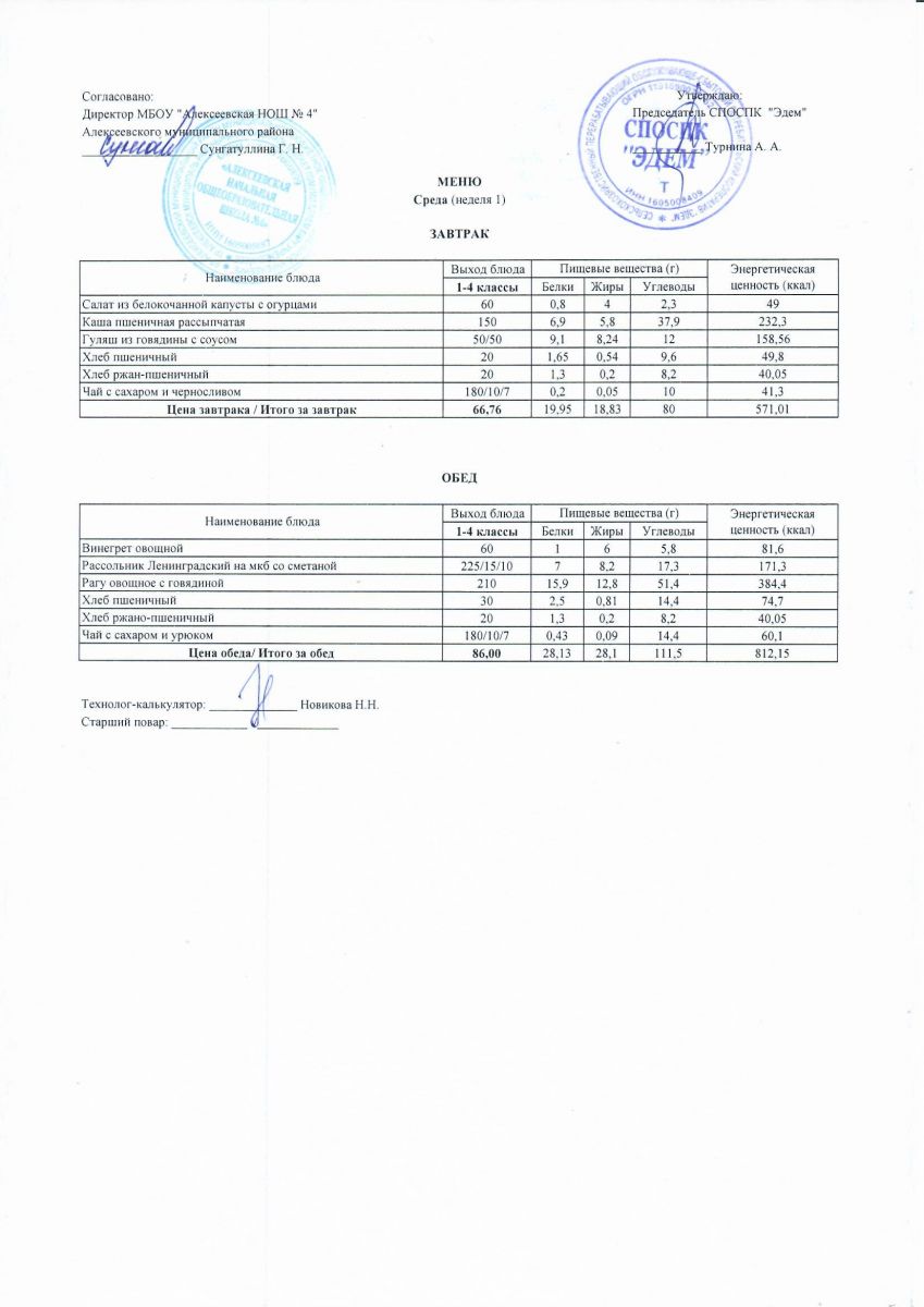 Меню для обучающихся 1-4 классов с 01.03.2024г