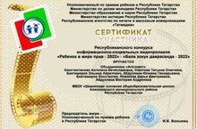 Участники объединения "Artсюжет" награждены сертификатом участника Республиканского конкурса информационно-социальных видеороликов "Ребенок в мире прав - 2022" - "Бала хокук даирәсендә - 2022"