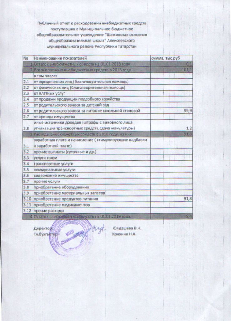 Публичный отчёт о расходовании внебюджетных средств (2018)