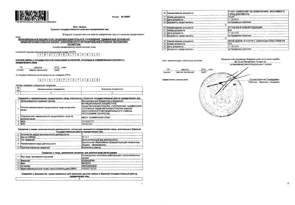 Муниципальное бюджетное общеобразовательное учреждение "Шаминская основная общеобразовательная школа" Алексеевского муниципального района Республики Татарстан\Татарстан Республикасы Алексеевск муниципаль районы «Шәмә гомуми төп белем бирү мәктәбе» муниципаль бюджет гомуми белем бирү учреждениесе