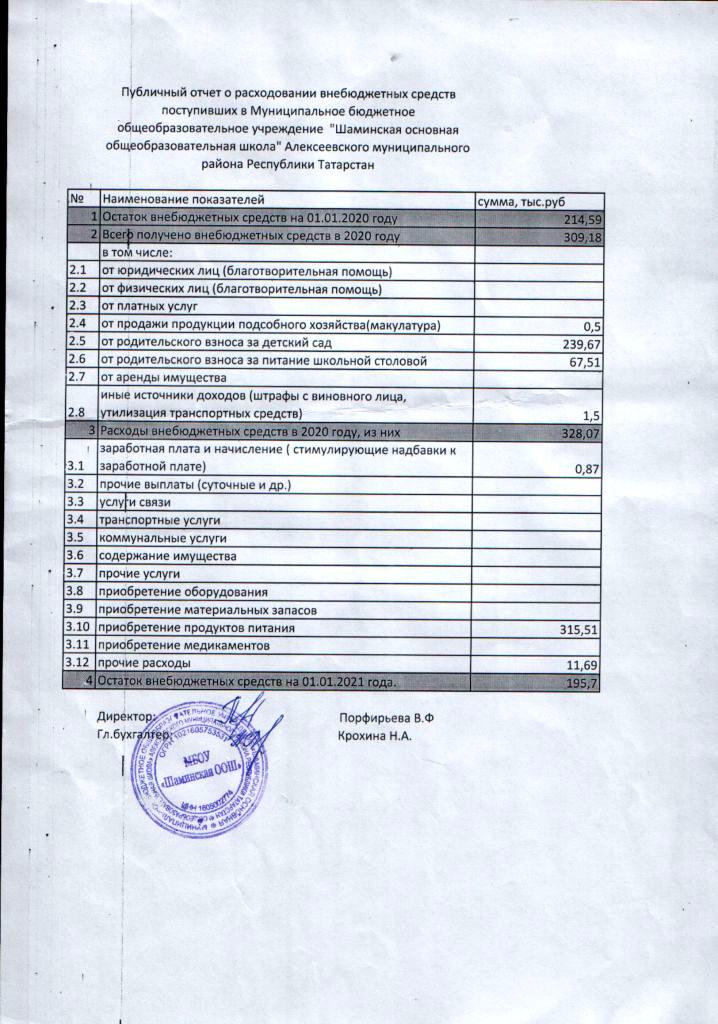 Публичный отчёт о расходовании внебюджетных средств (2020)