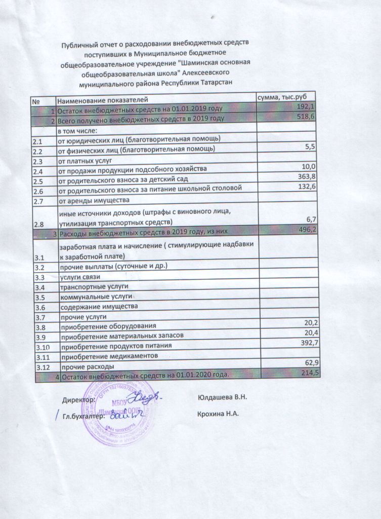 Публичный отчёт о расходовании внебюджетных средств (2019)
