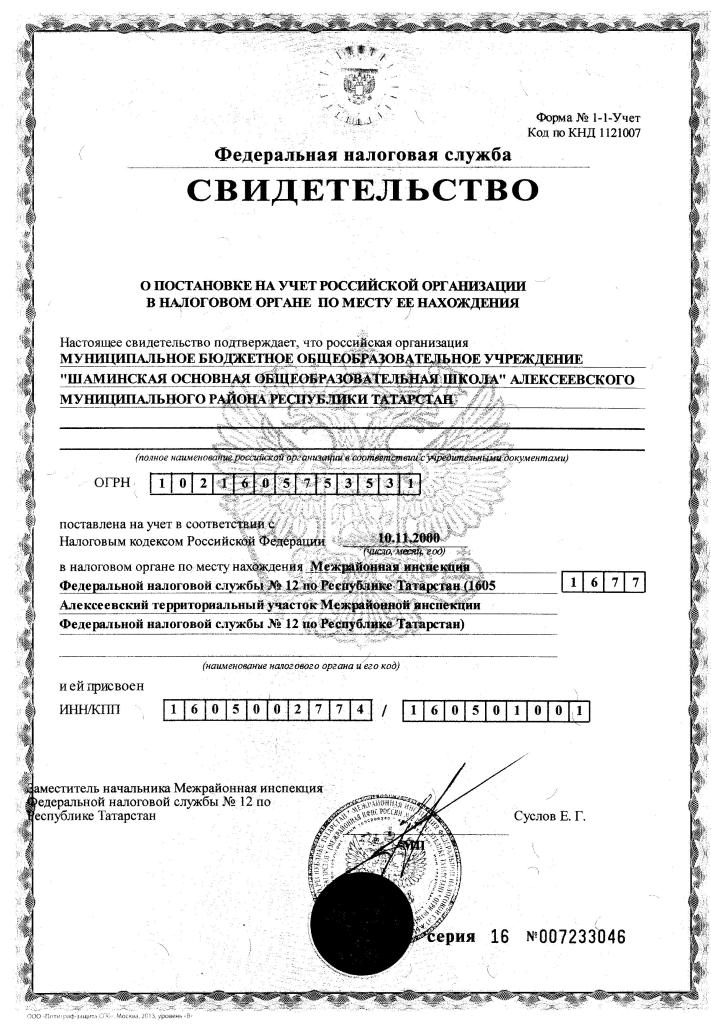 Свидетельство о постановке на учет в налоговом органе (ИНН)