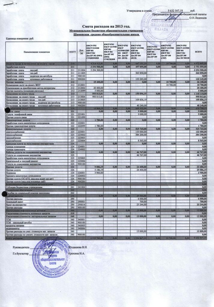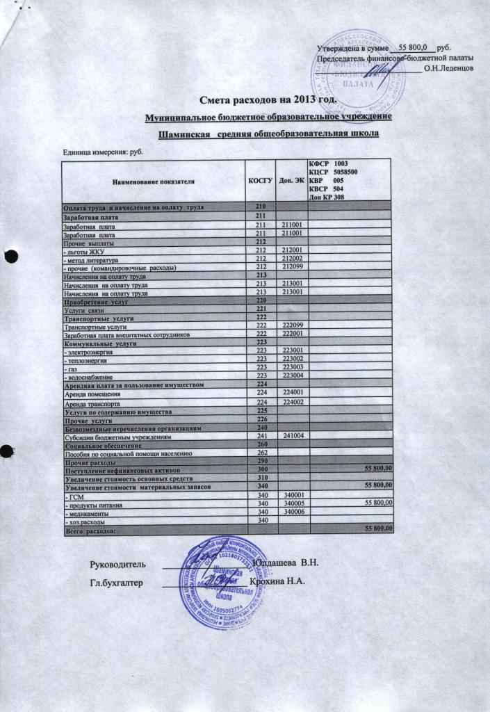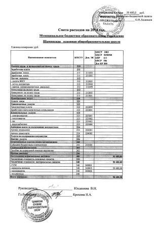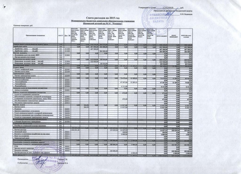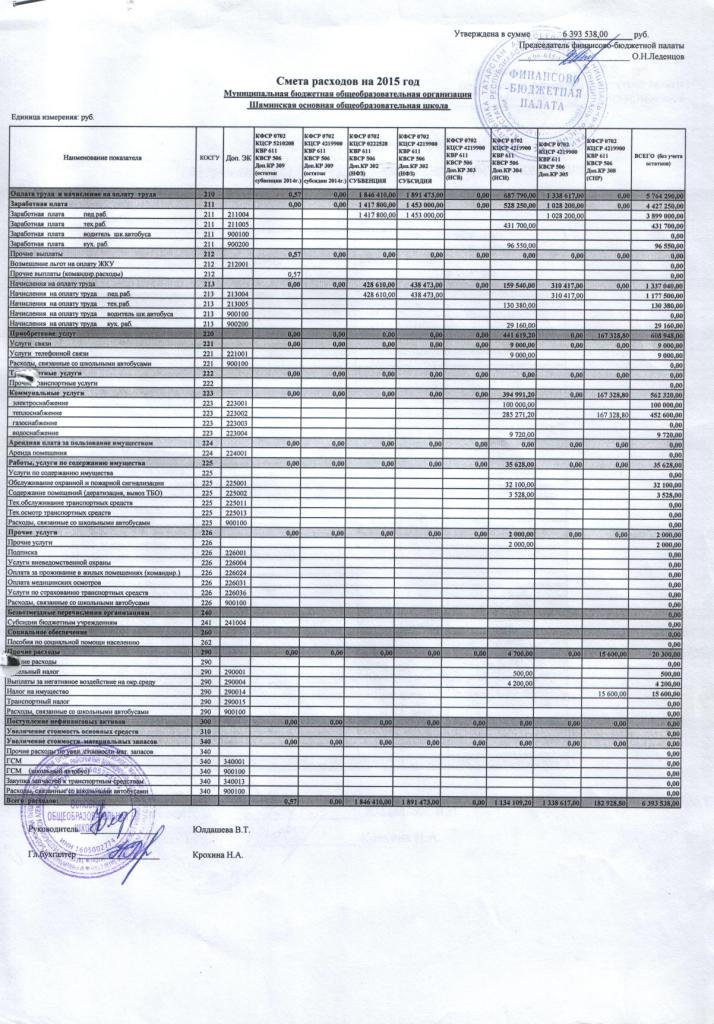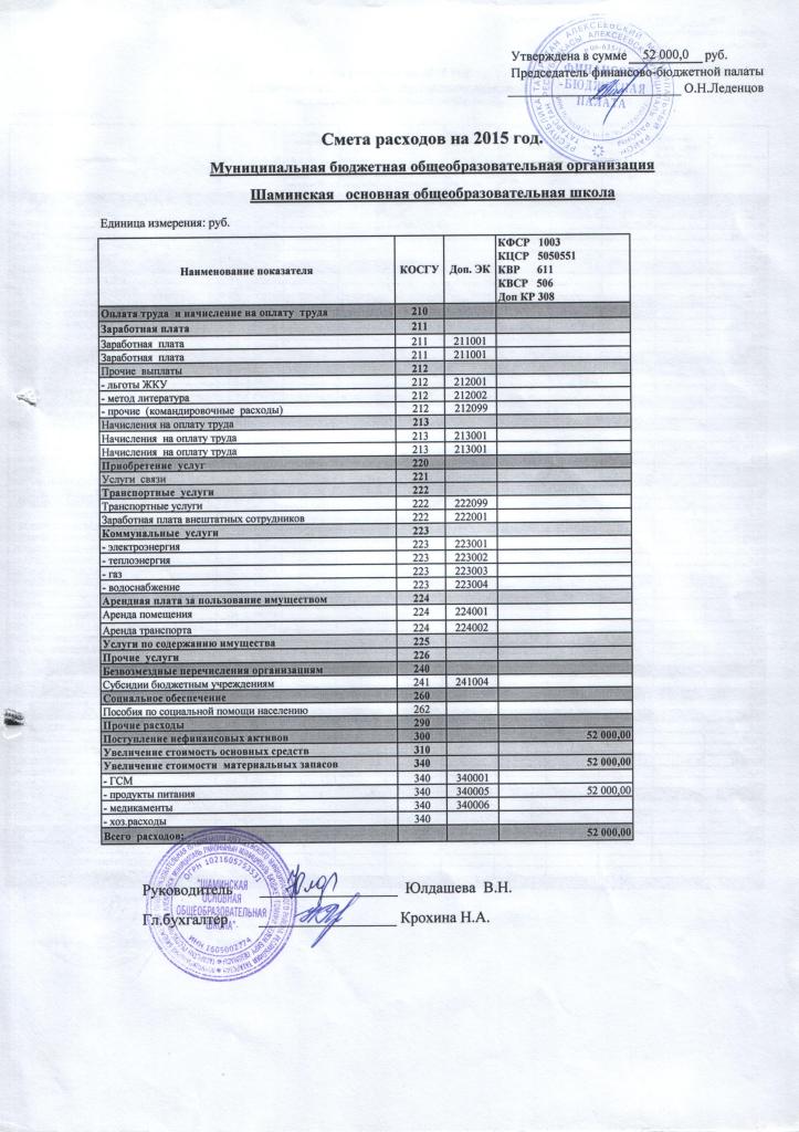 Смета расходов на 2015 год: №1, №2 (школа), №1 (ДОУ)