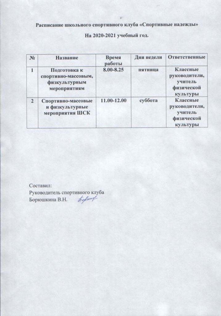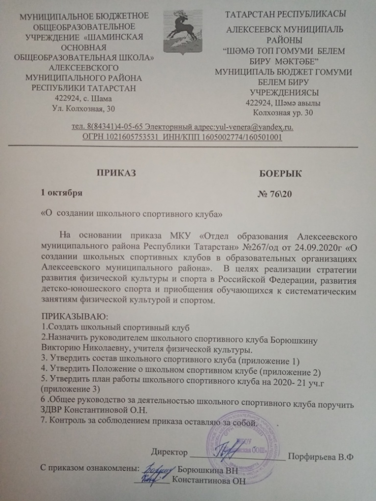 Приказ №76 от 14.09.2020 "О создании школьного спортивного клуба"