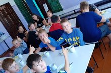 Сегодня с воспитанниками пришкольного лагеря труда и отдыха была проведена беседа " Правила безопасного поведения на водных объектах и оказание помощи пострадавшим на воде". После беседы прошёл конкурс талантов, приуроченный Году родных языков. Команда "Спецназ" исполнила песню "Во поле берёза стояла", а команда "Энергия" - "Жили у бабуси....". Далее провели "Удагай мелодию" по русским народным песням.
