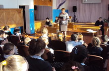 В рамках проводимого «Марша Памяти- 2016», для учащихся и педагогов школы члены клуба «Юнармеец-2» показали свою работу. Они познакомили всех с историей создания клуба, их деятельностью. Ребята пели песни, рассказывали стихи, показали сценку «Два бойца». Всё их выступление сопровождалось презентацией.