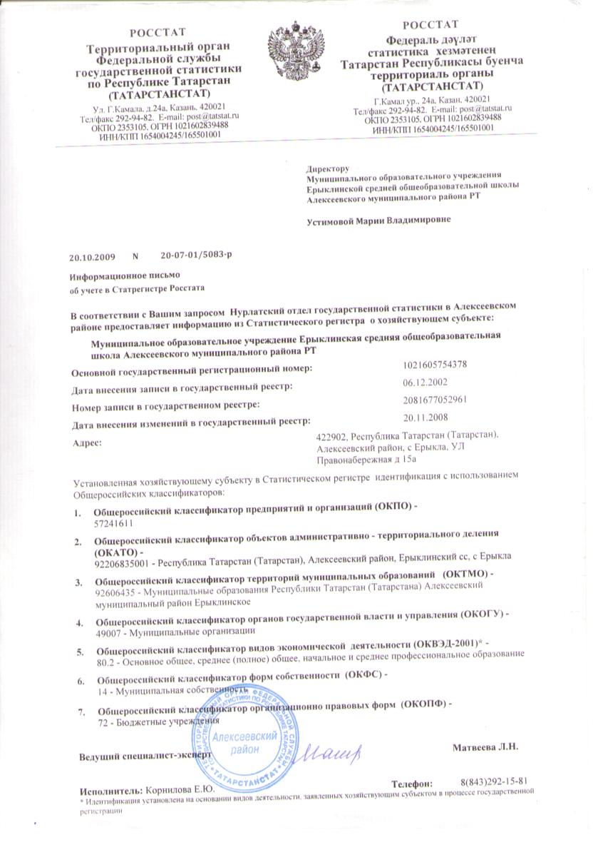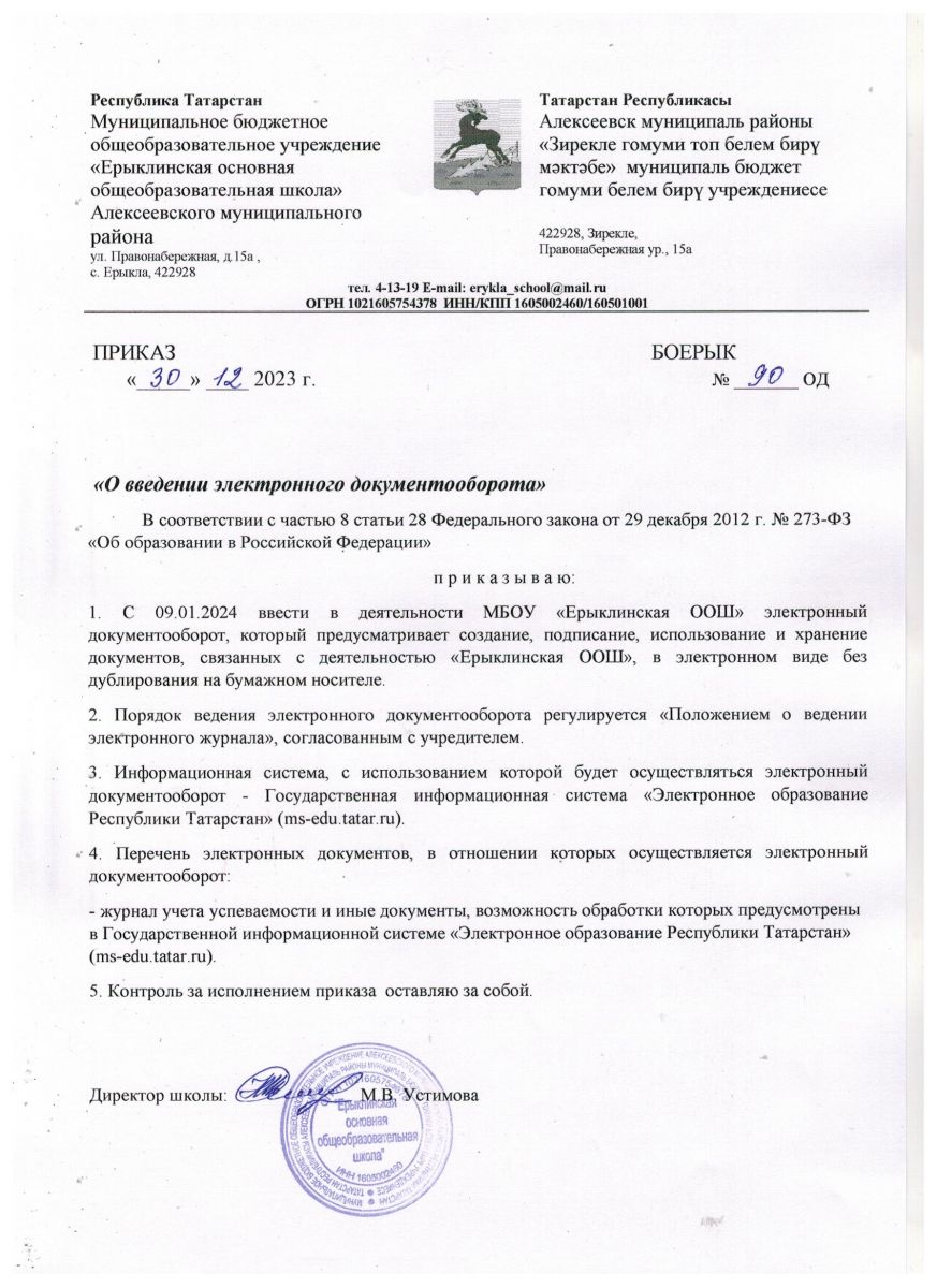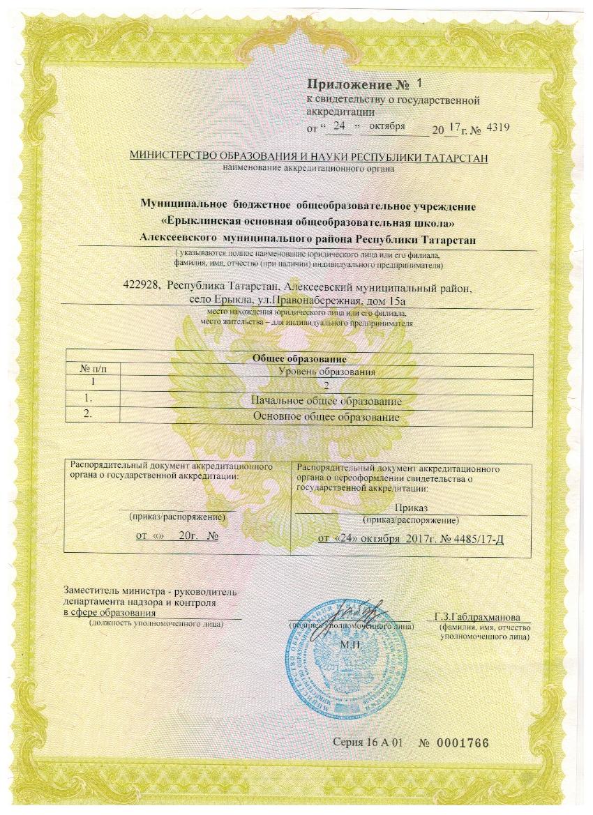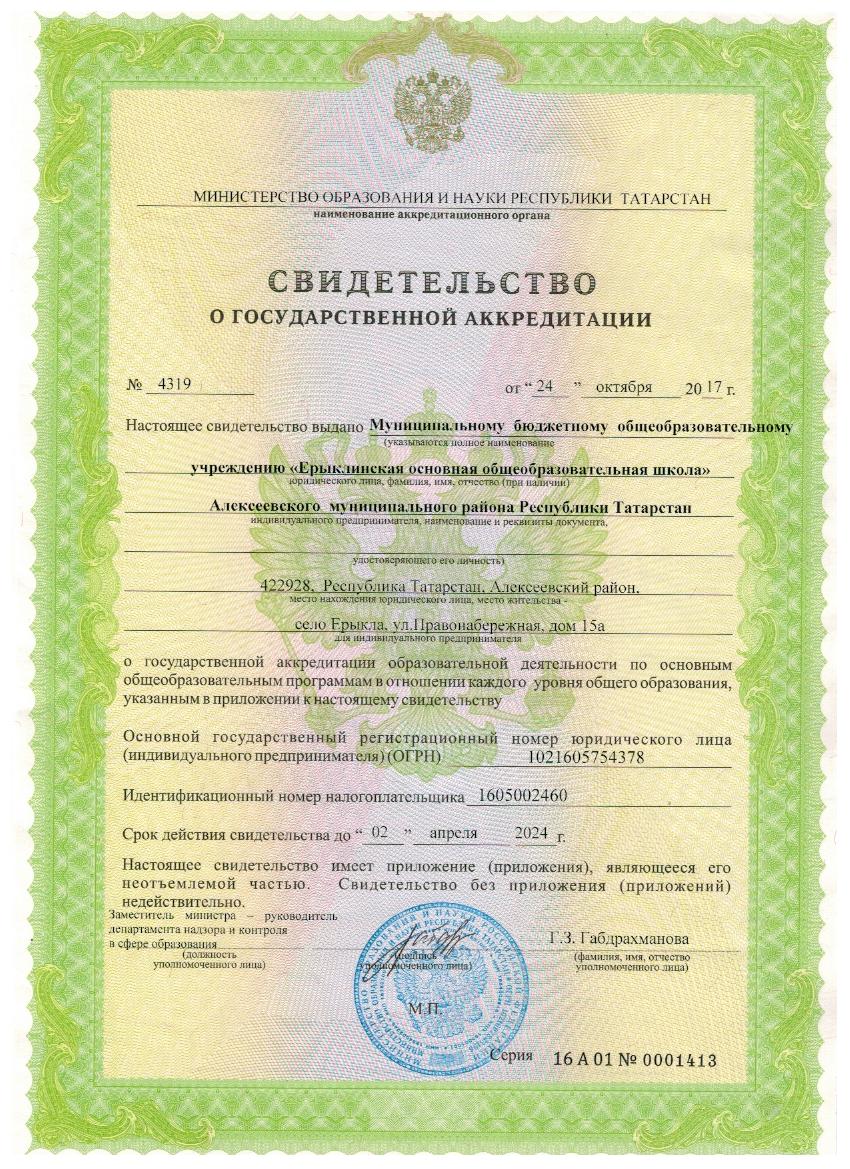 Муниципальное бюджетное общеобразовательное учреждение «Ерыклинская основная общеобразовательная школа» Алексеевского муниципального района Республики Татарстан/Татарстан Республикасы Алексеевск муниципаль районы «Зирекле гомуми топ белем бирү мәктәбе» муниципаль бюджет гомуми белем бирү учреждениесе