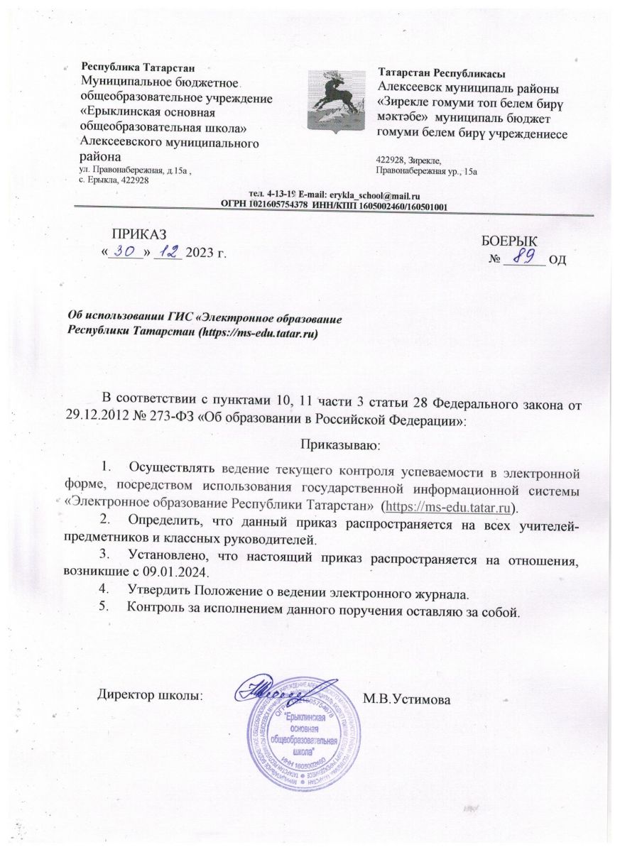 ♦ Приказ "Об использовании ГИС "Электронное образование Республики Татарстан (https://ms-edu.tatar.ru)