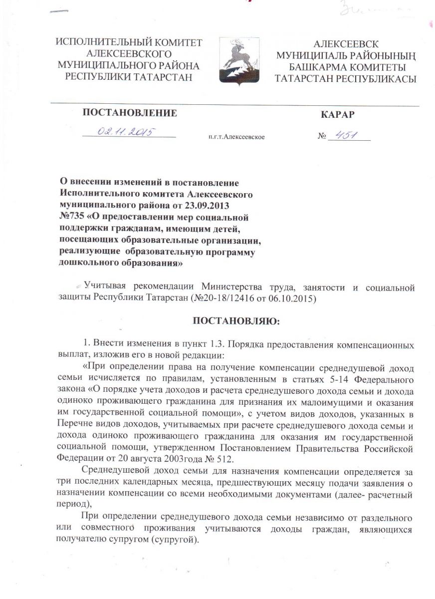 ► Постановление №126 от 11.04.2023 года "О внесении изменений в постановление Исполнительного комитета от 23.09.2013 года №735 " О предоставлении мер социальной поддержки гражданам, имеющим детей, посещающих образовательные организации, реализующие образовательную программу дошкольного образования"