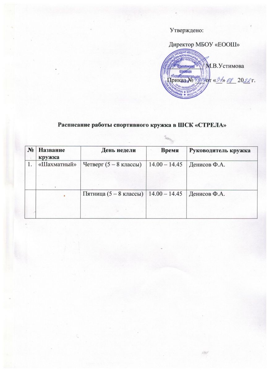 ►Расписание занятий ШСК на 2021-2022 учебный год