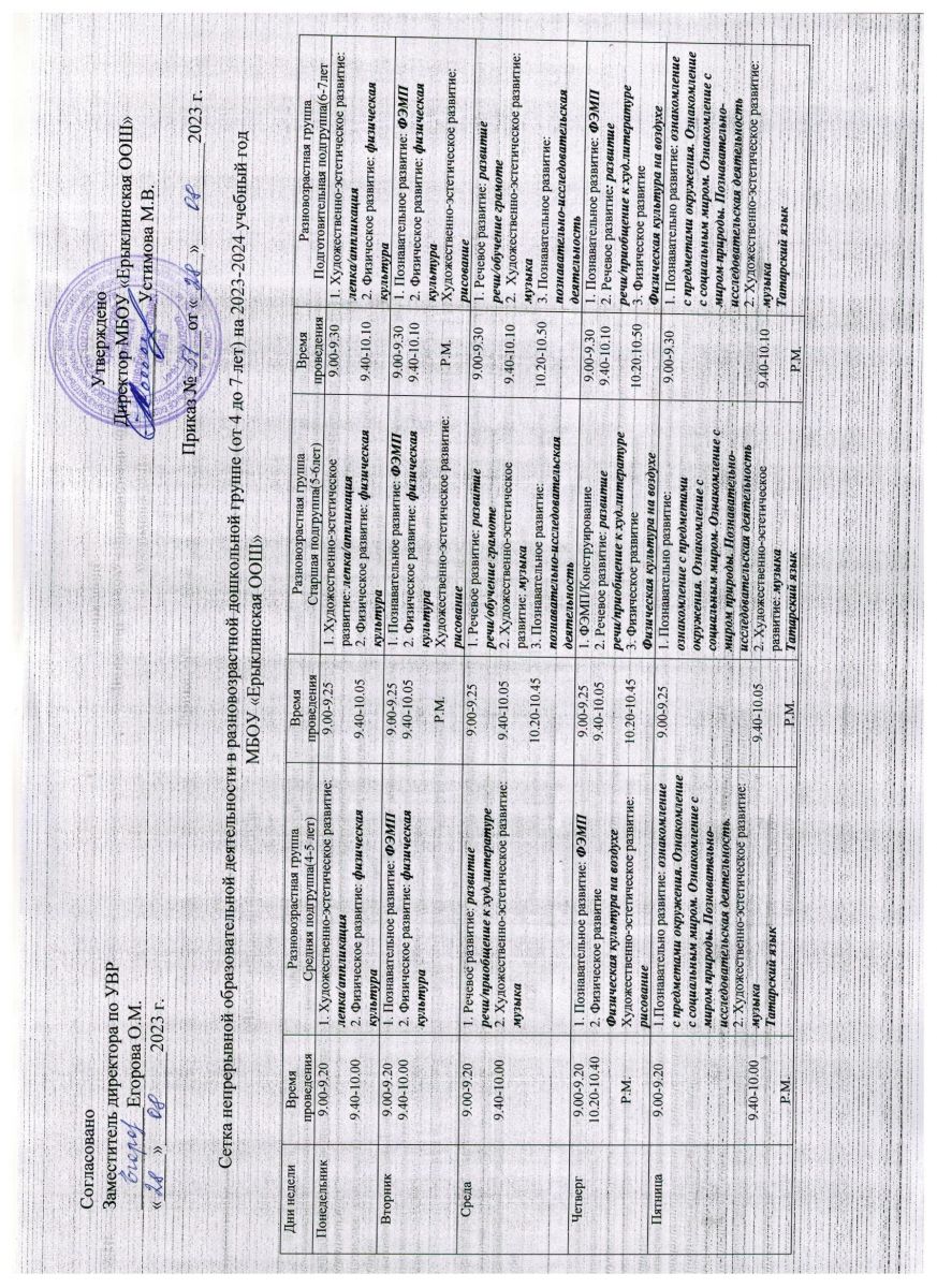 ♦ Расписание НОД (разновозрастная группа) на 2023-2024 учебный год