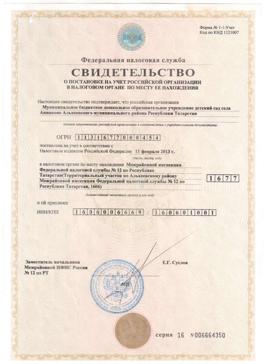 Свидетельство о постановке на учет в налоговом органе