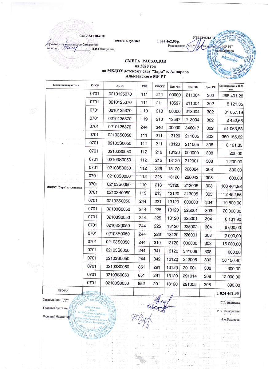 Короткое название: МБДОУ детский сад "Заря" с.Старое Алпарово