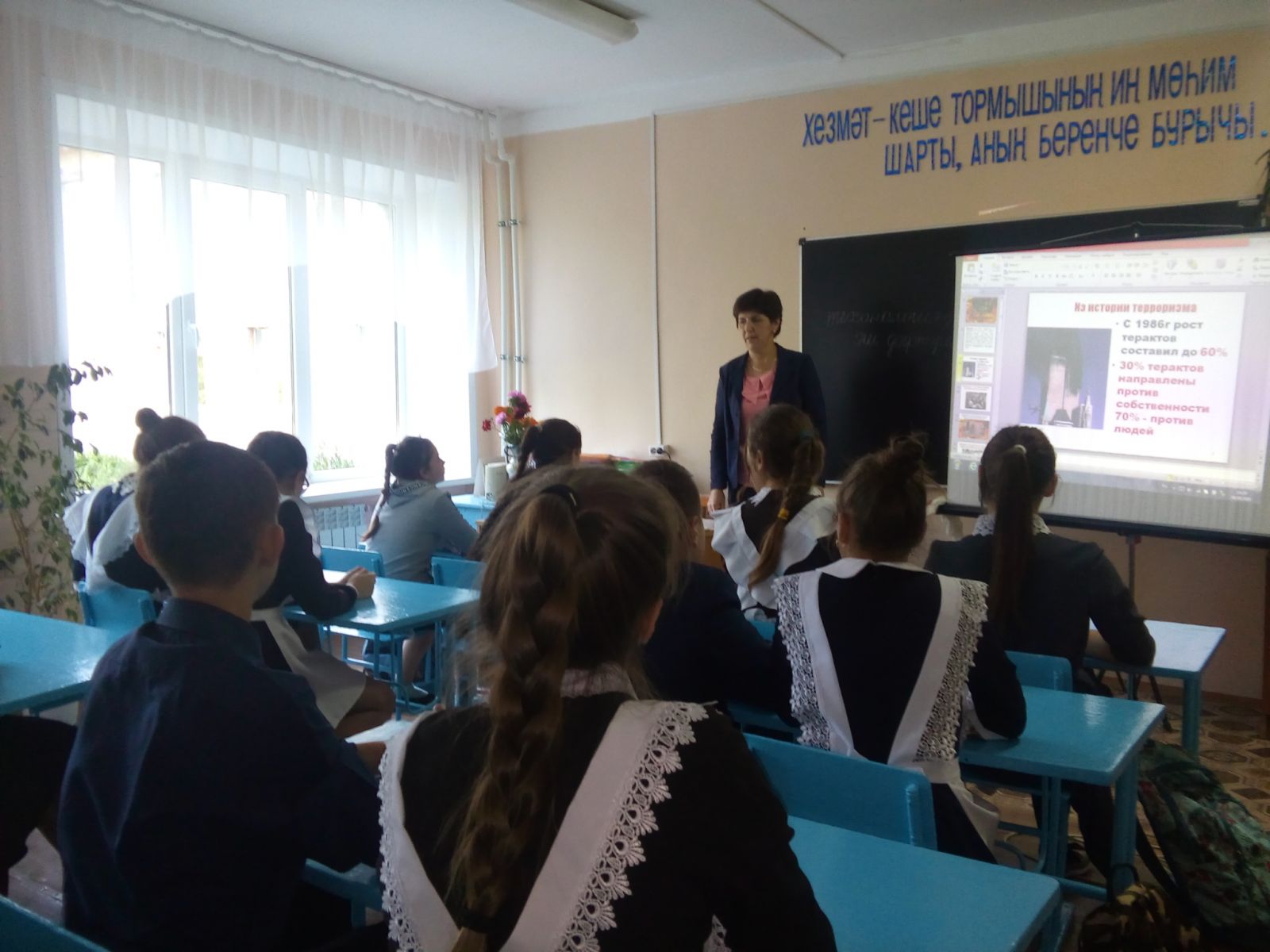 - Терроризм һәм экстремизм XXI гасырның глобаль проблемасы. 04.09.2018 Экстремизм һәм терроризм җәмгыяткә куркыныч янавы турындә һәр сыйныфта тәрбия сәгатьләре үткәрелде.